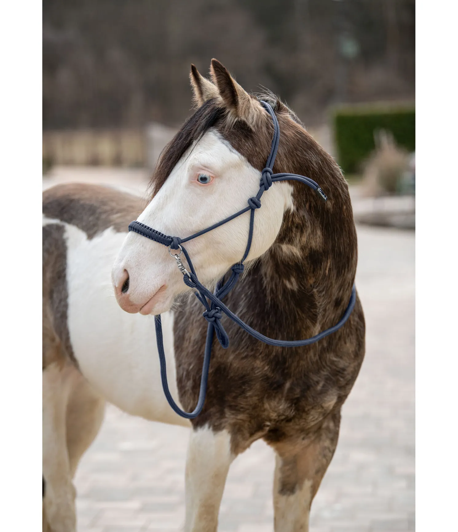 Licol à noeuds haut de gamme. Pour le travail au sol ou monté. En matière souple et résistante. Avec anneaux pour les rênes et muserolle tressée. Épaisseur de la corde 8 mm. Livré avec rênes à mousquetons et longe assorties. Longueur des rênes, mousquetons compris 2,6 m, épaisseur des rênes et de la longe 16 mm. Longueur de la longe 2,4 m.