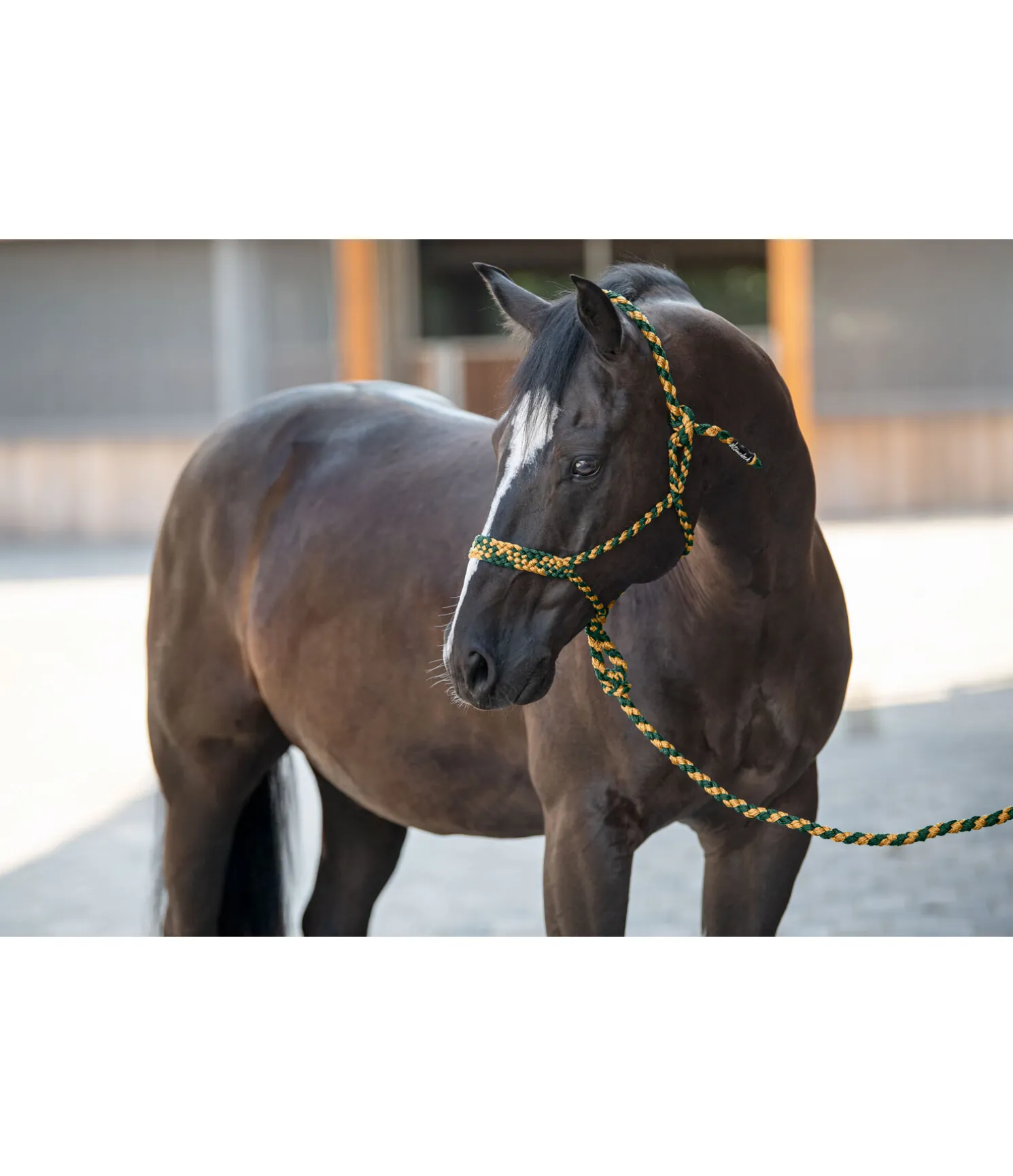 Licol à noeuds tressé particulièrement doux, avec longe assortie. Muserolle large pour une plus grande surface d’appui. Longueur de la longe 2,50 m.