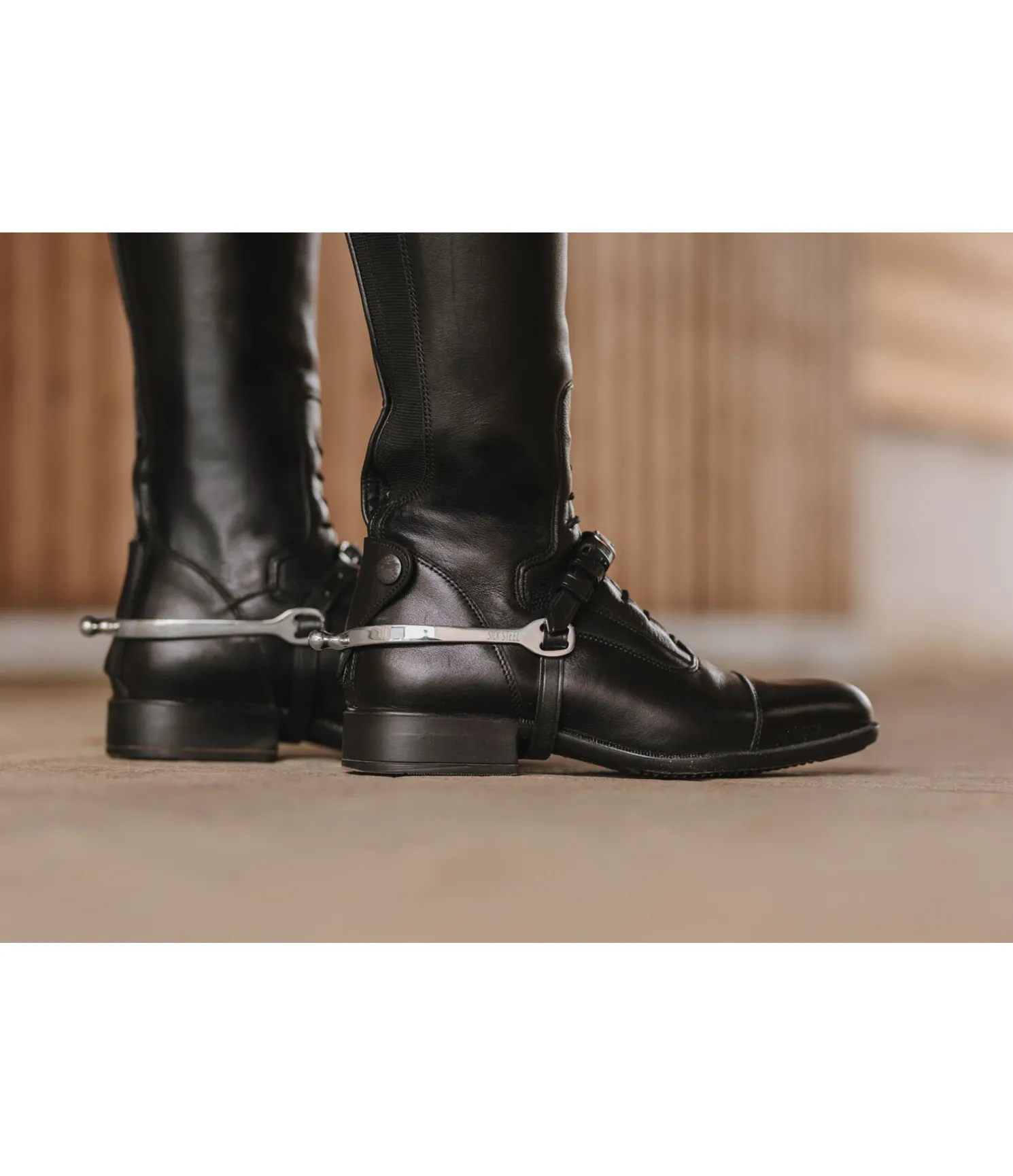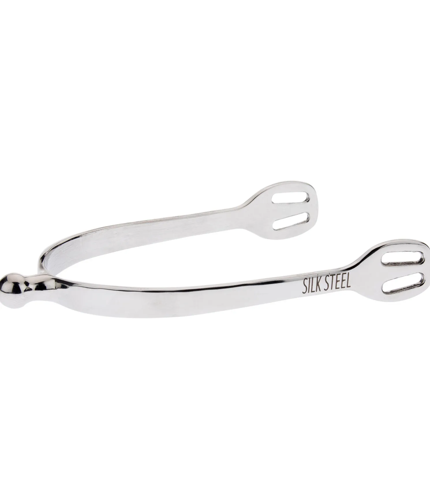 Éperons à bout rond en acier inoxydable. Logo SILK STEEL gravé. Forme améliorée des oeillets facilitant le passage des lanières.