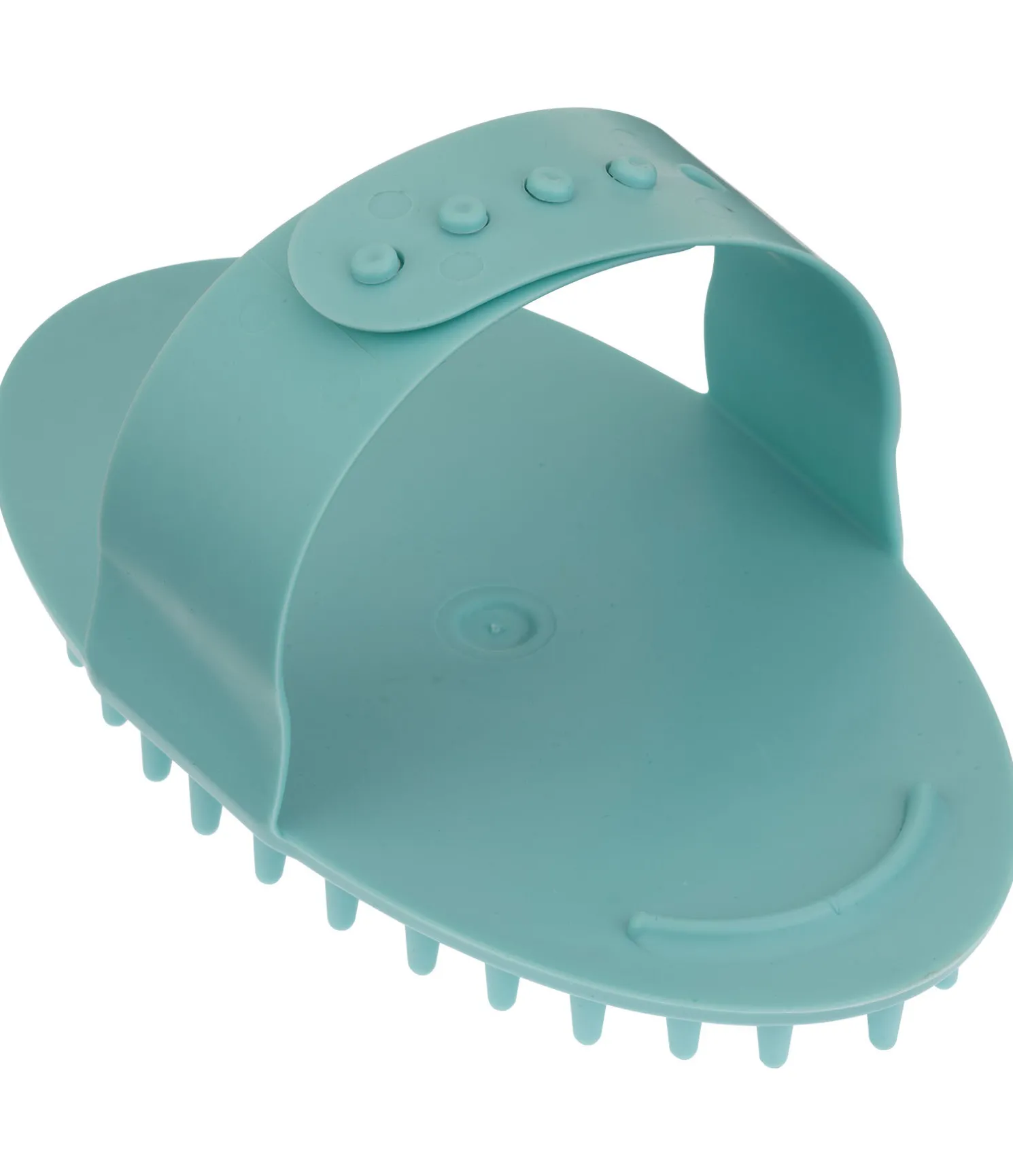 Étrille à picots très flexibles en plastique souple. Idéale pour le massage des chevaux et en période de mue. Le bord arrondi au niveau des doigts permet une prise en main optimale lors du pansage et fait gagner en efficacité. Avec dragonne ajustable. 16 x 9,5 cm.