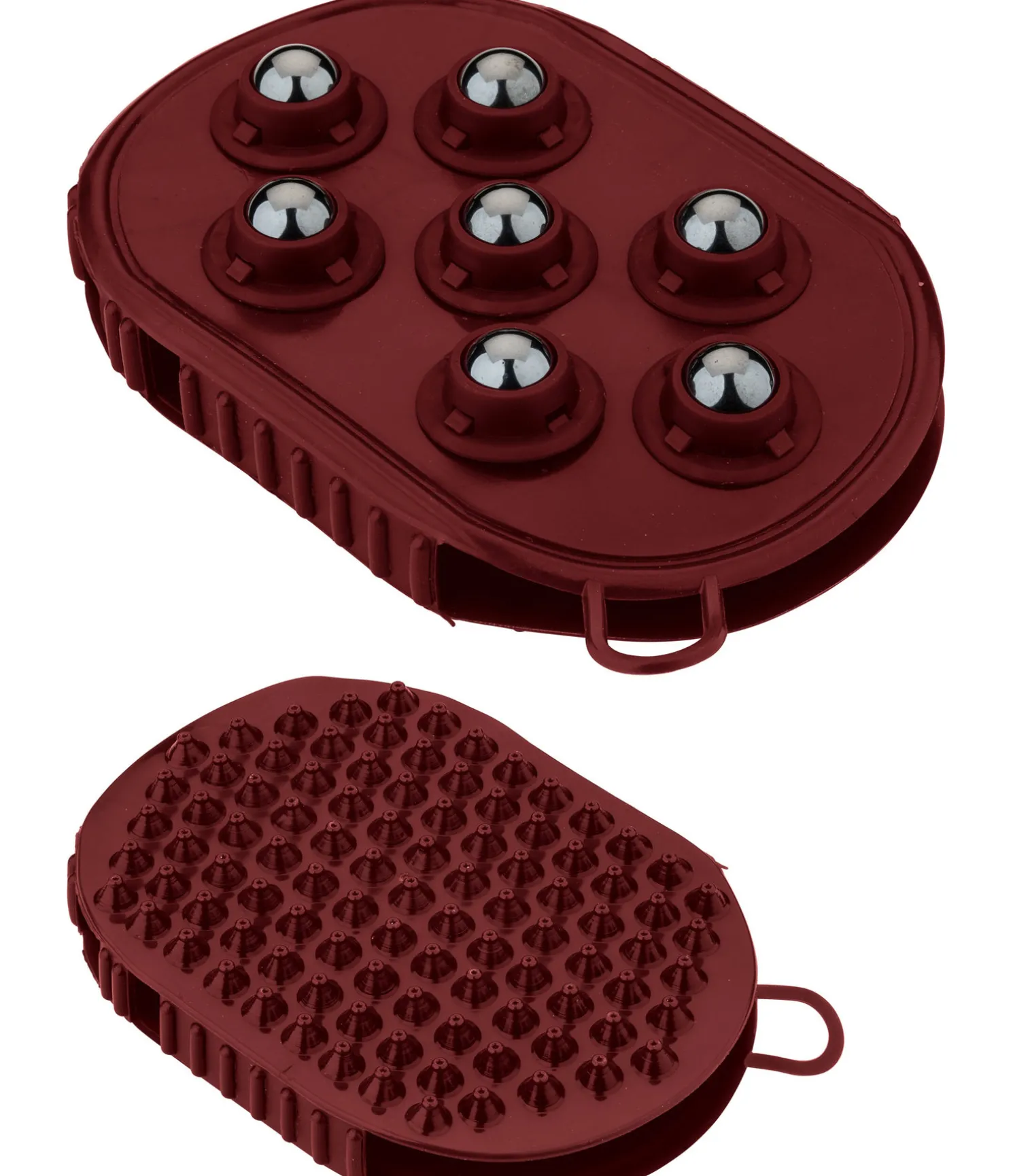 Avec billes de massage magnétiques sur une face et picots en caoutchouc sur l’autre face. 15,5 x 10,5 cm.
