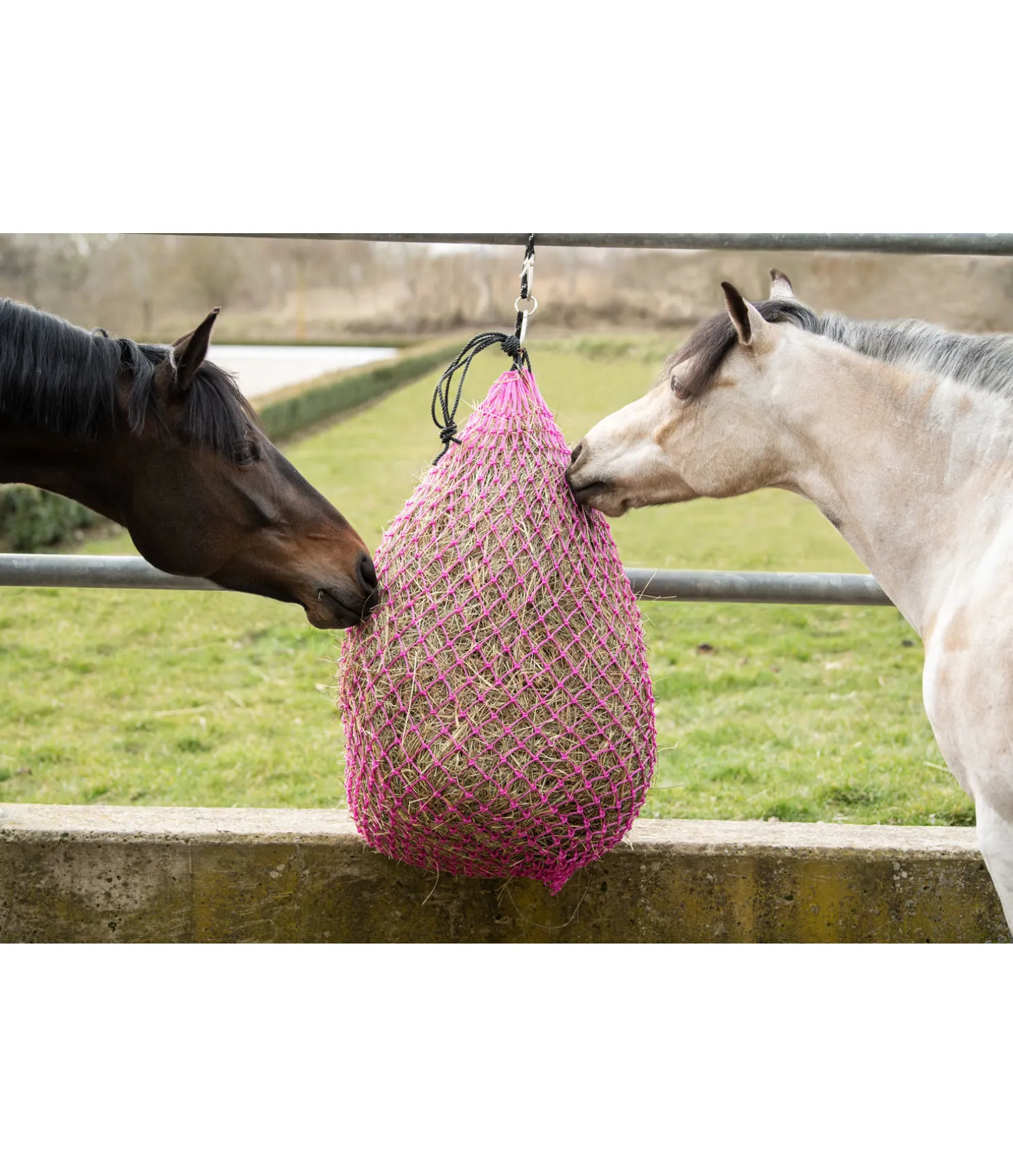 Filet à foin avec mailles 3 x 3 cm pour ralentir la prise alimentaire. Dimensions maximales du filet : 80 x 105 cm. Capacité : 6 kg.