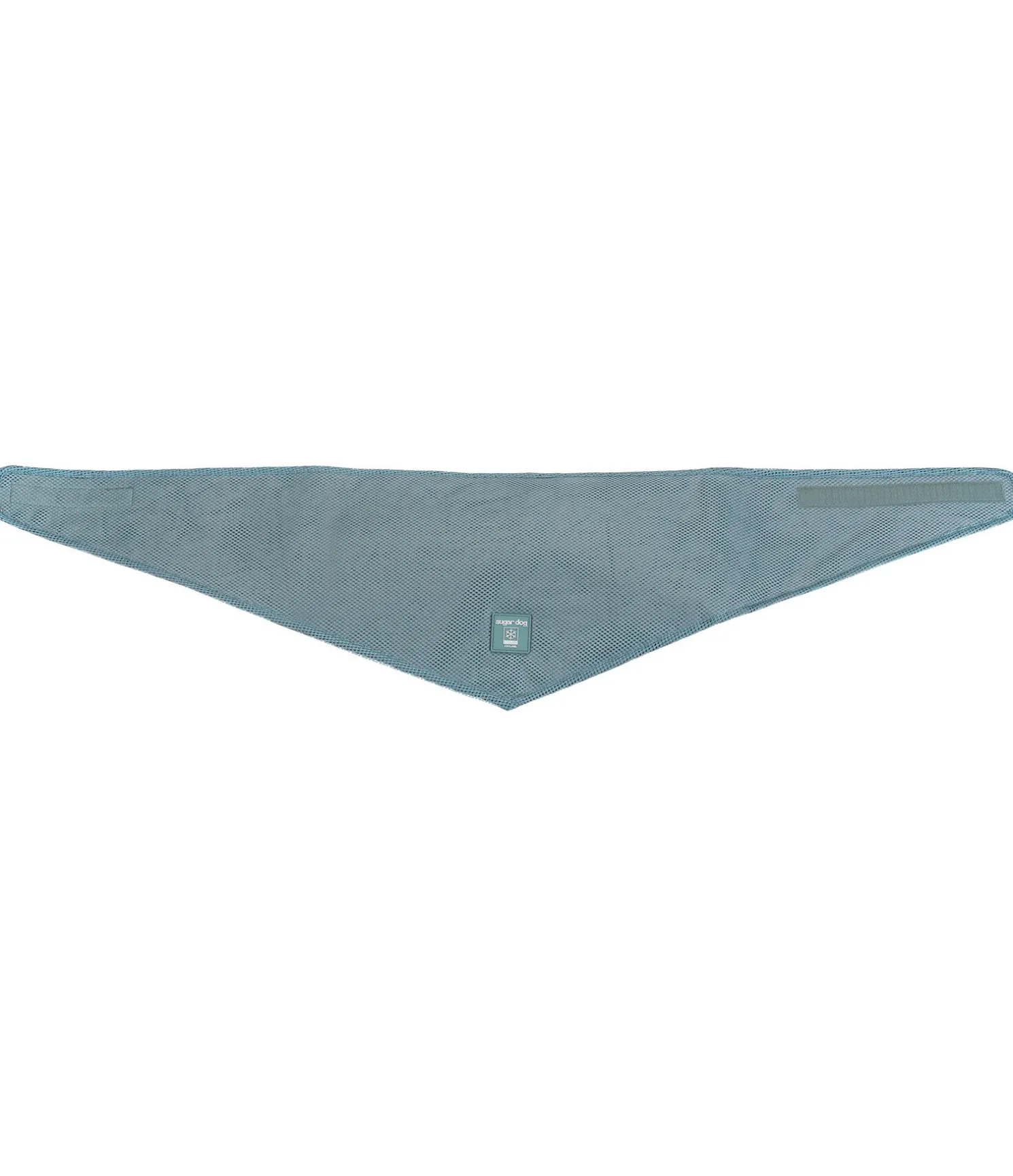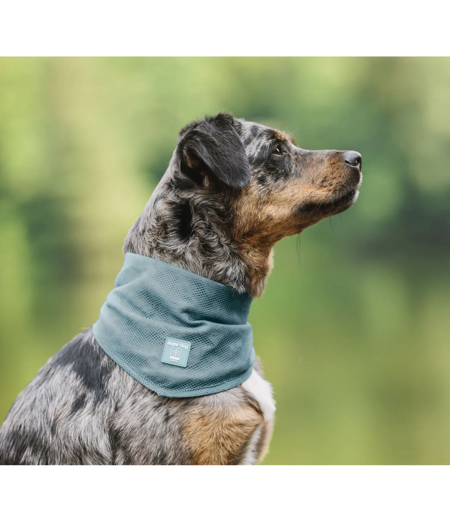 Accessoire pratique pour aider le chien à réguler sa température corporelle lors des chaudes journées d’été. La matière du foulard permet de rafraîchir la nuque et le cou du chien grâce à l’effet de refroidissement par évaporation. Le foulard doit pour cela être plongé dans de l’eau froide puis légèrement essoré. Il doit ensuite être fixé au cou du chien à l’aide de la patte auto-agrippante réglable, de façon à être bien ajusté sur le poil. Grâce à la matière mesh, l’eau s’évapore lentement ce qui procure un effet rafraîchissant pour le chien et soulage notamment les chiens à poil épais. L’effet dure aussi longtemps que le foulard est humide : la durée varie donc en fonction de la température extérieure et de l’ensoleillement. Idéal pour les randonnées ou les promenades en été sans possibilité de baignade. Peut protéger des coups de chaleur. Nous recommandons d’habituer lentement les vieux chiens ou les chiens avec des problèmes cardiovasculaires en plongeant le foulard dans une eau pas trop froide. Mesh 100 % polyester, matière rafraîchissante 100% alcool polyvinylique. Attention ! Les chiens ne transpirent pas par la peau comme les humains. Ils ne peuvent transpirer que par les glandes sudoripares de leurs pattes et régulent ensuite la chaleur de leur corps uniquement par les halètements. Pour cela, les chiens prennent dix fois plus d’inspirations qu’en temps normal afin d’évacuer la chaleur et l’humidité de l’air et pour refroidir leur sang. Bien que leurs poils les protègent, ils peuvent aussi devenir un fardeau en cas de températures élevées en compliquant la régulation de la chaleur. C’est pourquoi il y a quelques règles à respecter en été : En cas de températures extrêmes, installer son chien dans un endroit ombragé avec suffisamment d’eau potable. Éviter les promenades sous le soleil de midi et surtout sur l’asphalte brûlant ; privilégier les promenades en forêt le matin ou le soir. Ne pas laisser son chien dans une voiture fermée ! À partir de 20° C, il peut vite faire très chaud dans une voiture (après 10 minutes en plein soleil, il peut faire jusqu’à 27 ° C !). Cela peut être dangereux voir fatal pour le chien. La température corporelle normale pour un chien est entre 37,5 et 39° C. À partir de 41° C, les premiers symptômes de problèmes cardiovasculaires apparaissent : forts halètements, vacillements, vomissements et fatigue intense. En cas de coup de chaleur, consulter immédiatement un vétérinaire.