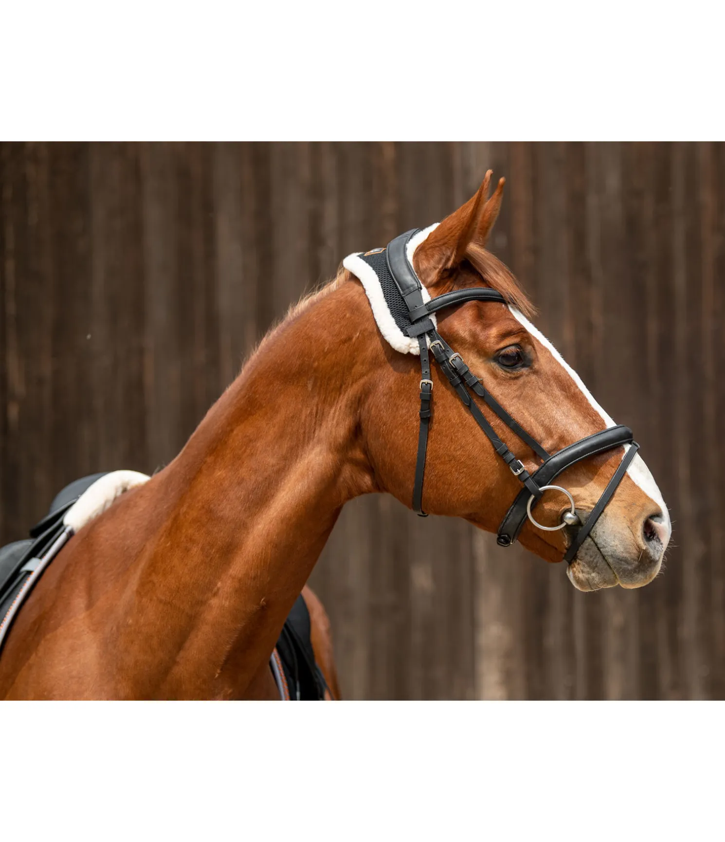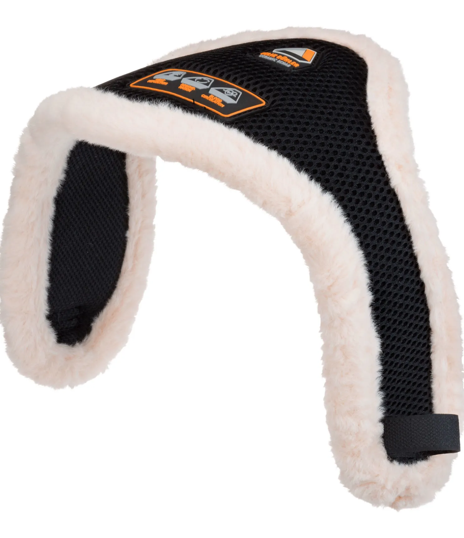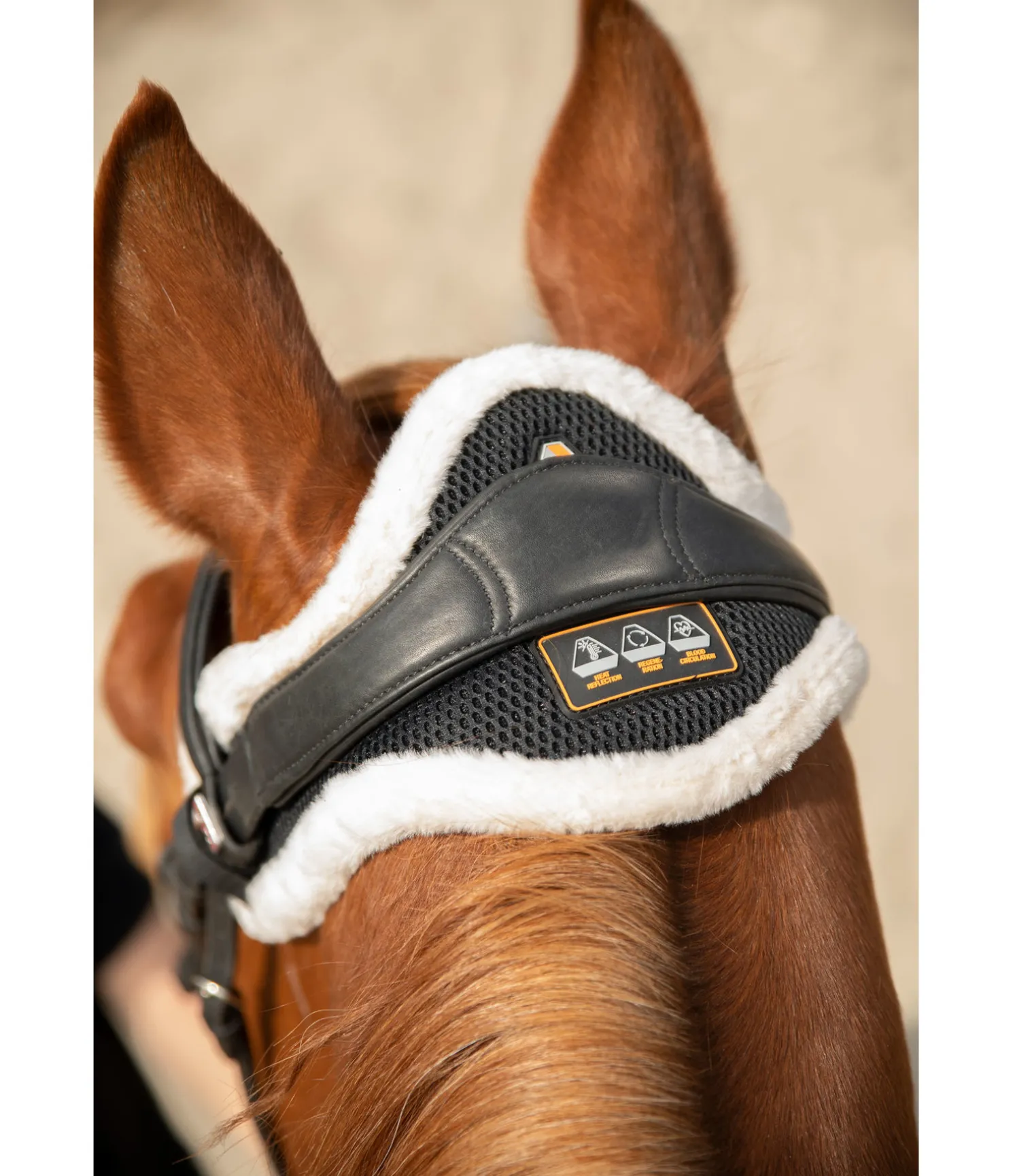 Fourreau de têtière anatomique avec triple patte auto-agrippante pour une fixation rapide au licol ou au bridon. Extra large au centre et avec découpe aux oreilles pour bien couvrir la zone de la nuque. Bordures en polaire Teddy douce pour éviter les irritations dues aux frottements. Avec fibres de céramique intégrées, qui réfléchissent la chaleur corporelle et améliorent la circulation sanguine. Peut avoir un effet positif sur les tensions musculaires dans la zone des vertèbres cervicales et aider le cheval à se détendre. En tissu Air mesh respirant et absorbant l’humidité. Nous déconseillons aux femmes enceintes ainsi qu’aux animaux en gestation l’utilisation des articles contenant des fibres de céramique. 100 % polyester.