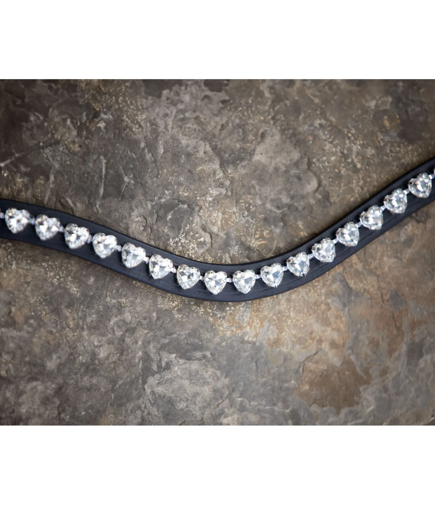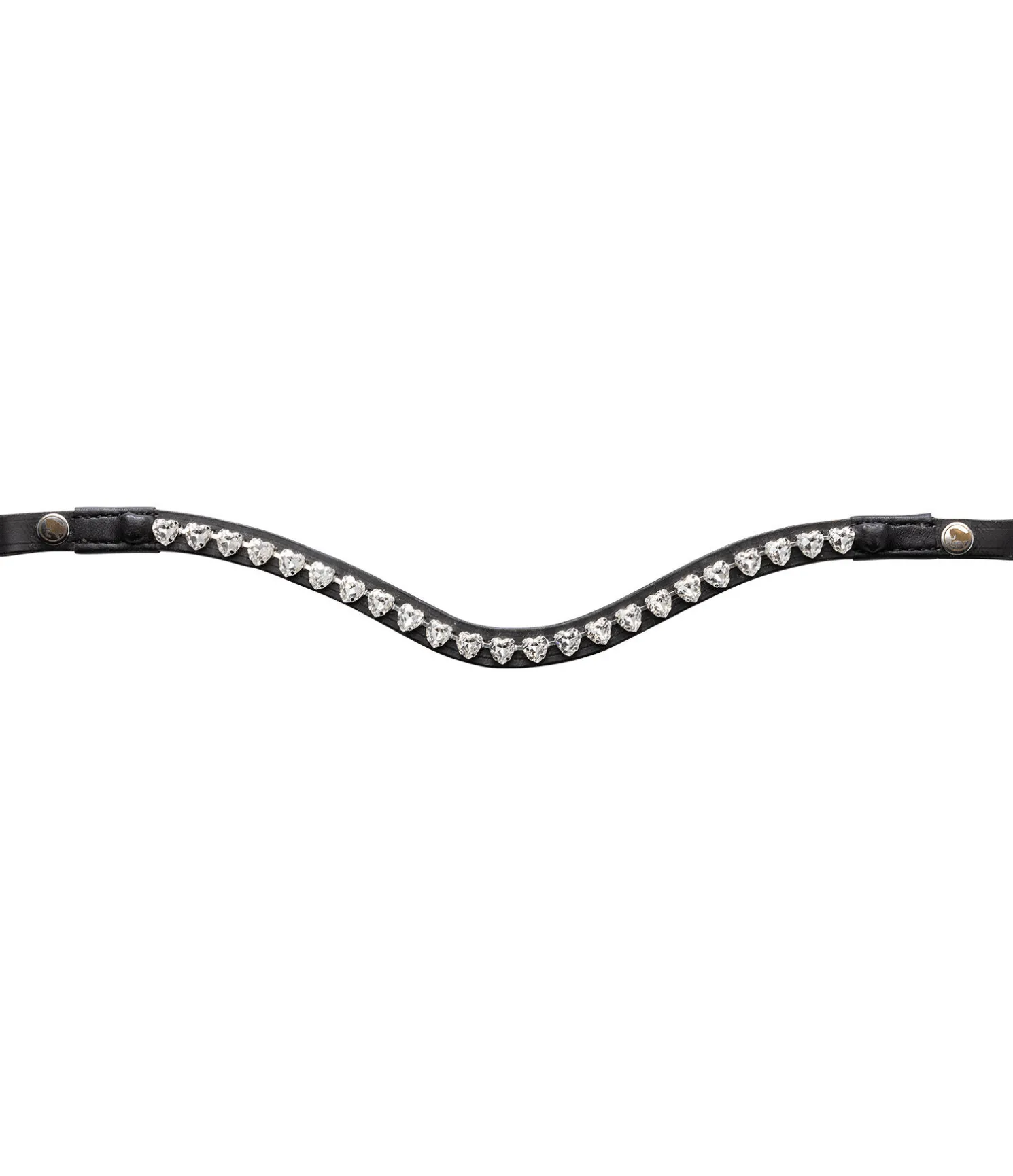 Frontal vague avec strass en forme de coeur. Boutons-pression latéraux pour une fixation rapide et facile. Cuir véritable.