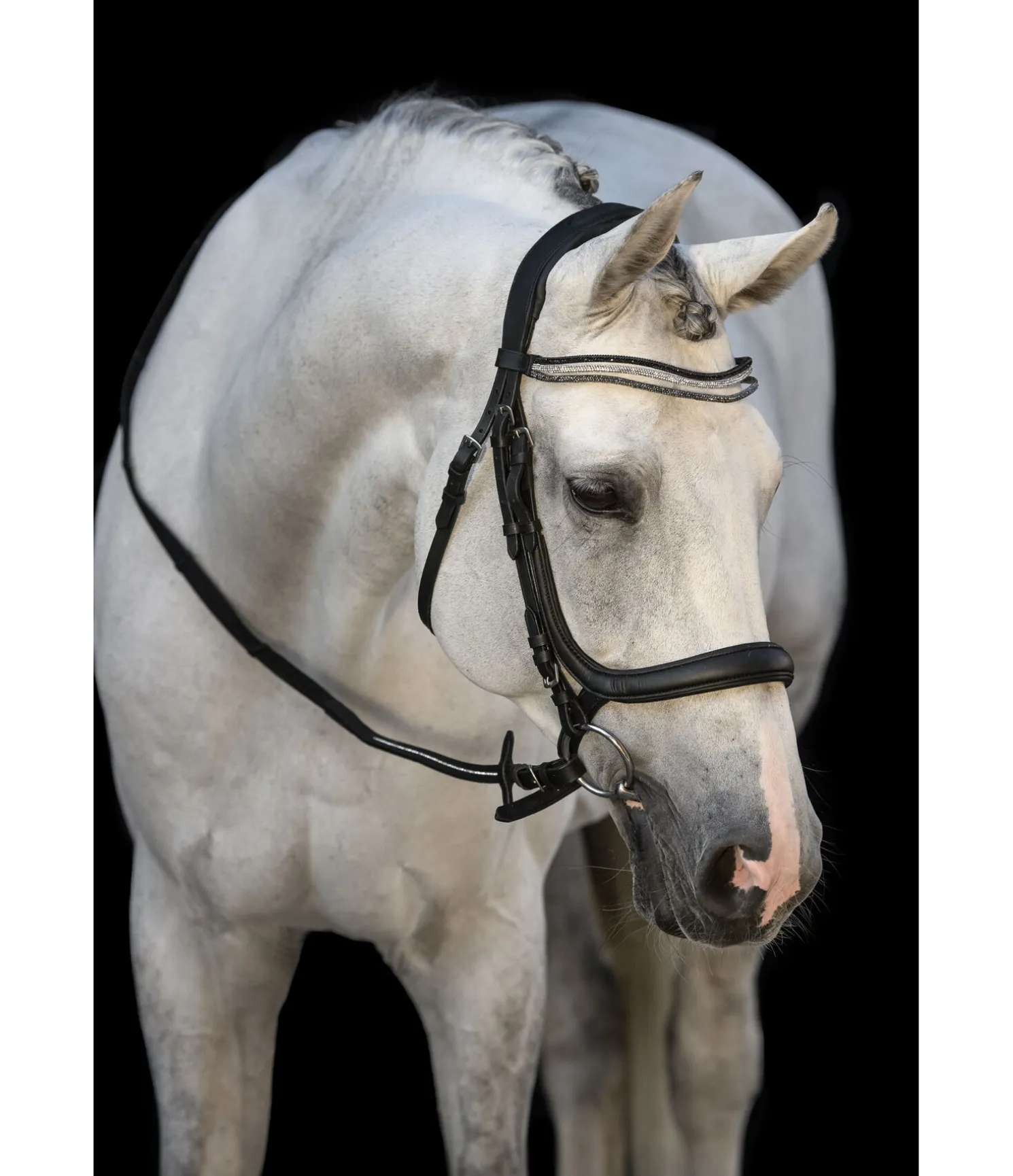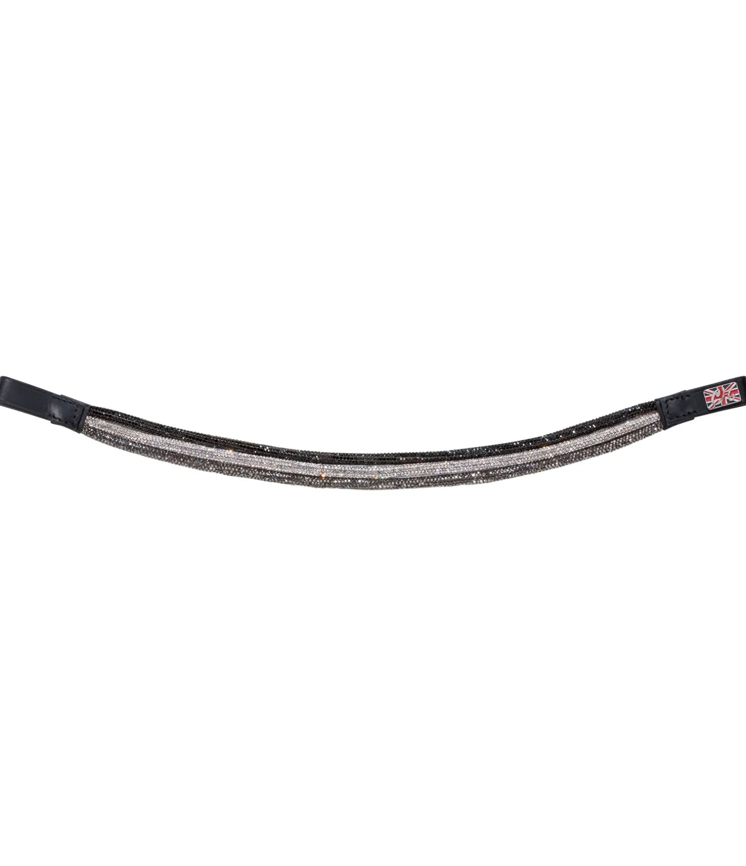Frontal vague triple original. Composé de trois bandes de strass gris, blancs et noirs qui forment un dégradé étincelant. Cuir gras.