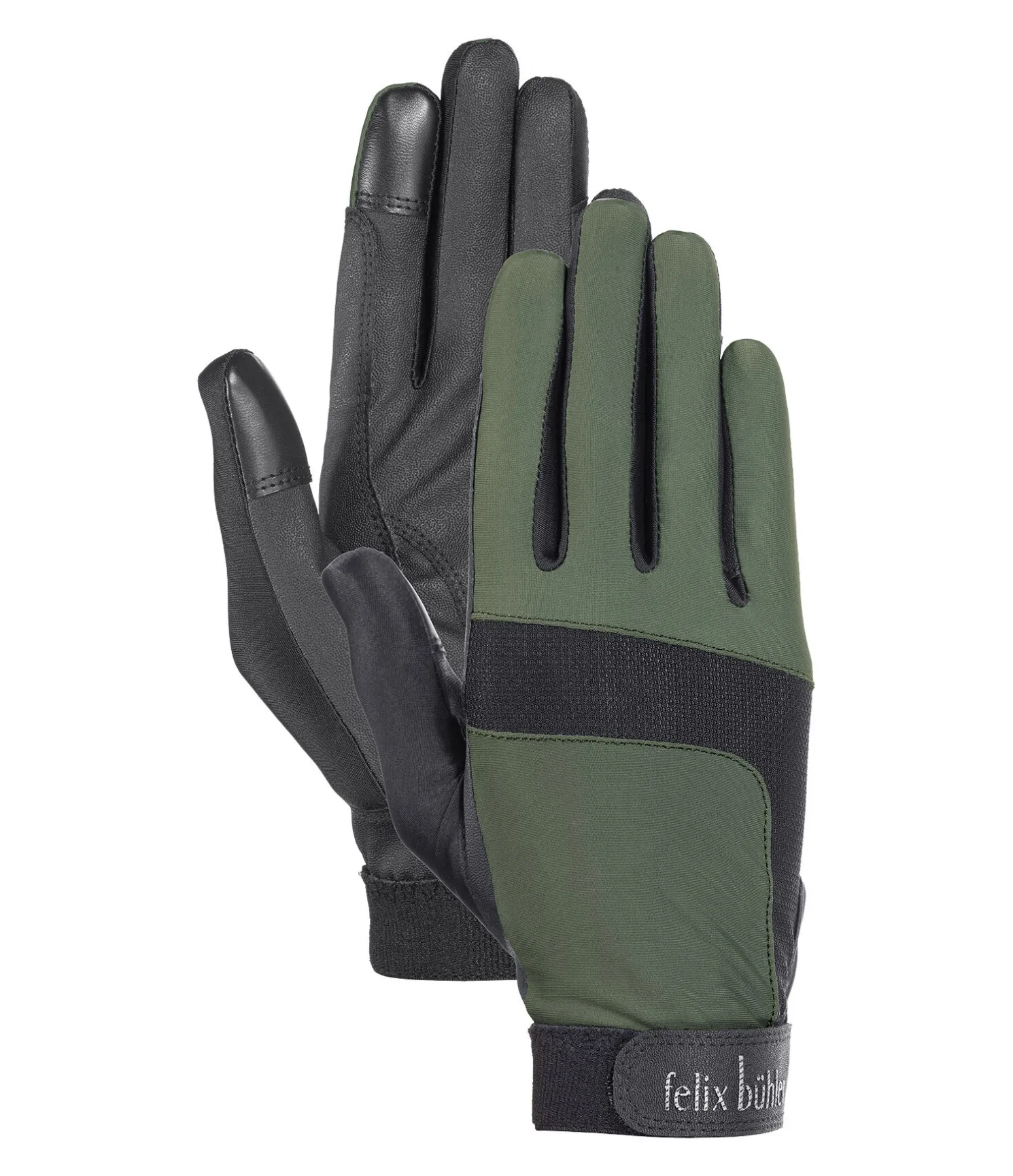 Gants d’équitation d’été extensibles. Extra légers. Insert en Mesh sur le dessus de main. Fermeture par patte auto-agrippante avec logo Felix Bühler. Matière antidérapante en cuir synthétique sur la paume pour un bon maintien des rênes en main. Gants compatibles avec les écrans tactiles. Dessus de main : 100 % nylon, paume : 60 % polyester, 40 % polyuréthane.