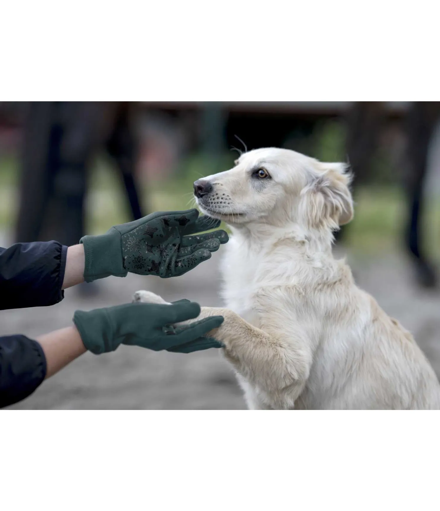 Gants d’équitation sportifs en polaire douce, également adaptés aux journées très froides. Paume avec imprimé flocon de neige. Dessus 100% nylon, intérieur 100% polyester.