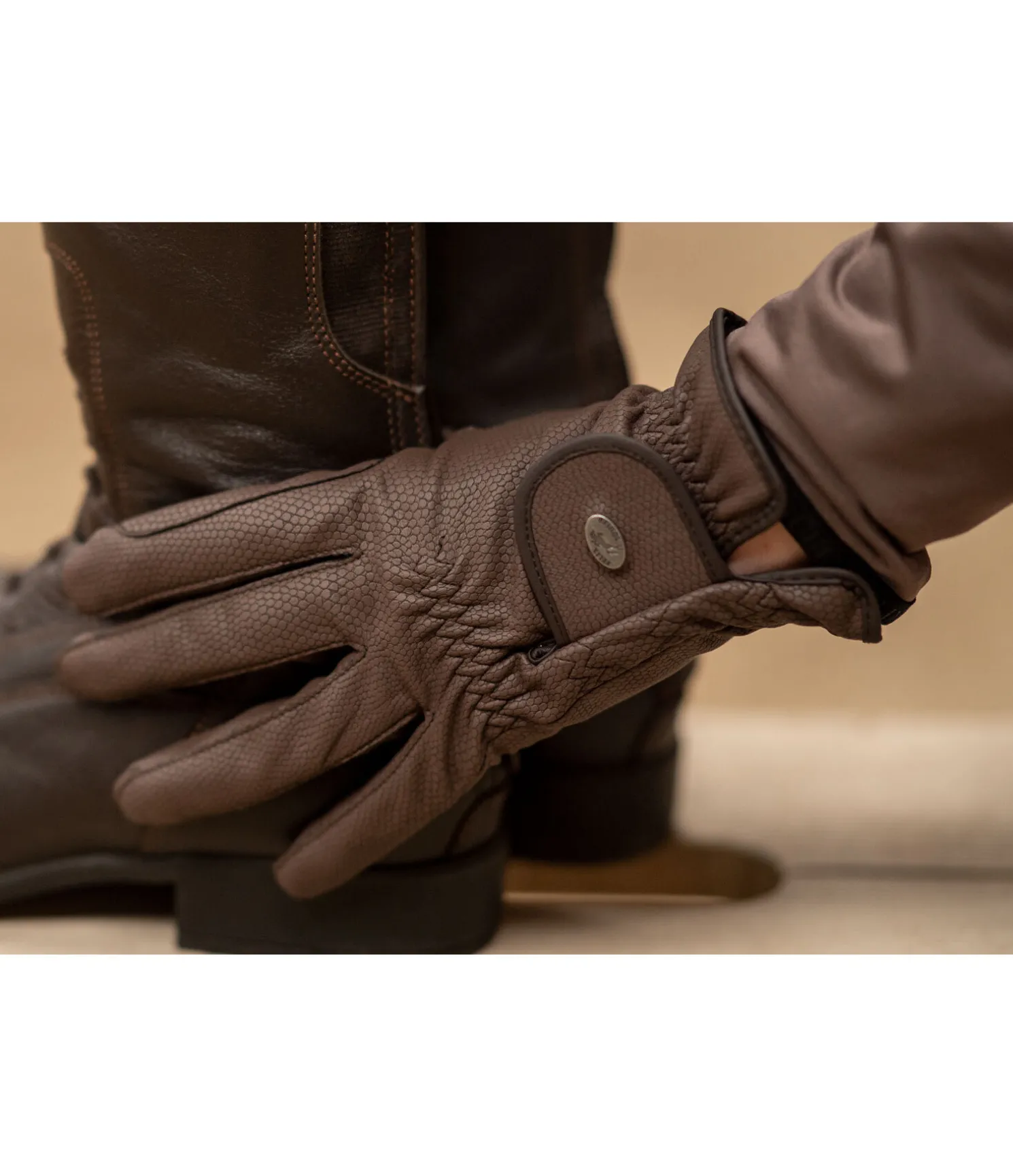 Gants d’équitation d’hiver légèrement rembourrés en matière extensible. Malgré le rembourrage, ils s’adaptent à la main comme une seconde peau, ce qui permet une utilisation précise et agréable des rênes. Synthétique antidérapant et résistant à la déchirure avec renforts aux passages de rênes. Compatibles avec les écrans tactiles. Respirants. 50 % polyuréthane, 50 % polyester.