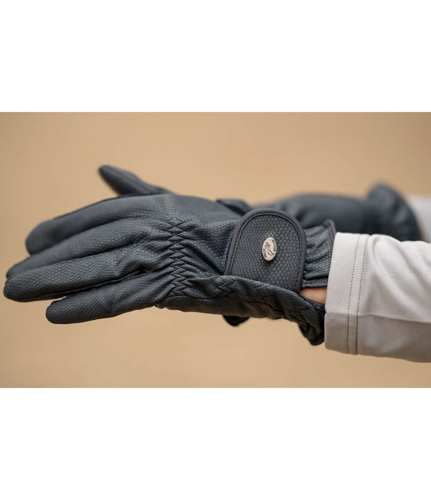 Gants d’équitation d’hiver légèrement rembourrés en matière extensible. Malgré le rembourrage, ils s’adaptent à la main comme une seconde peau, ce qui permet une utilisation précise et agréable des rênes. Synthétique antidérapant et résistant à la déchirure avec renforts aux passages de rênes. Compatibles avec les écrans tactiles. Respirants. 50 % polyuréthane, 50 % polyester.