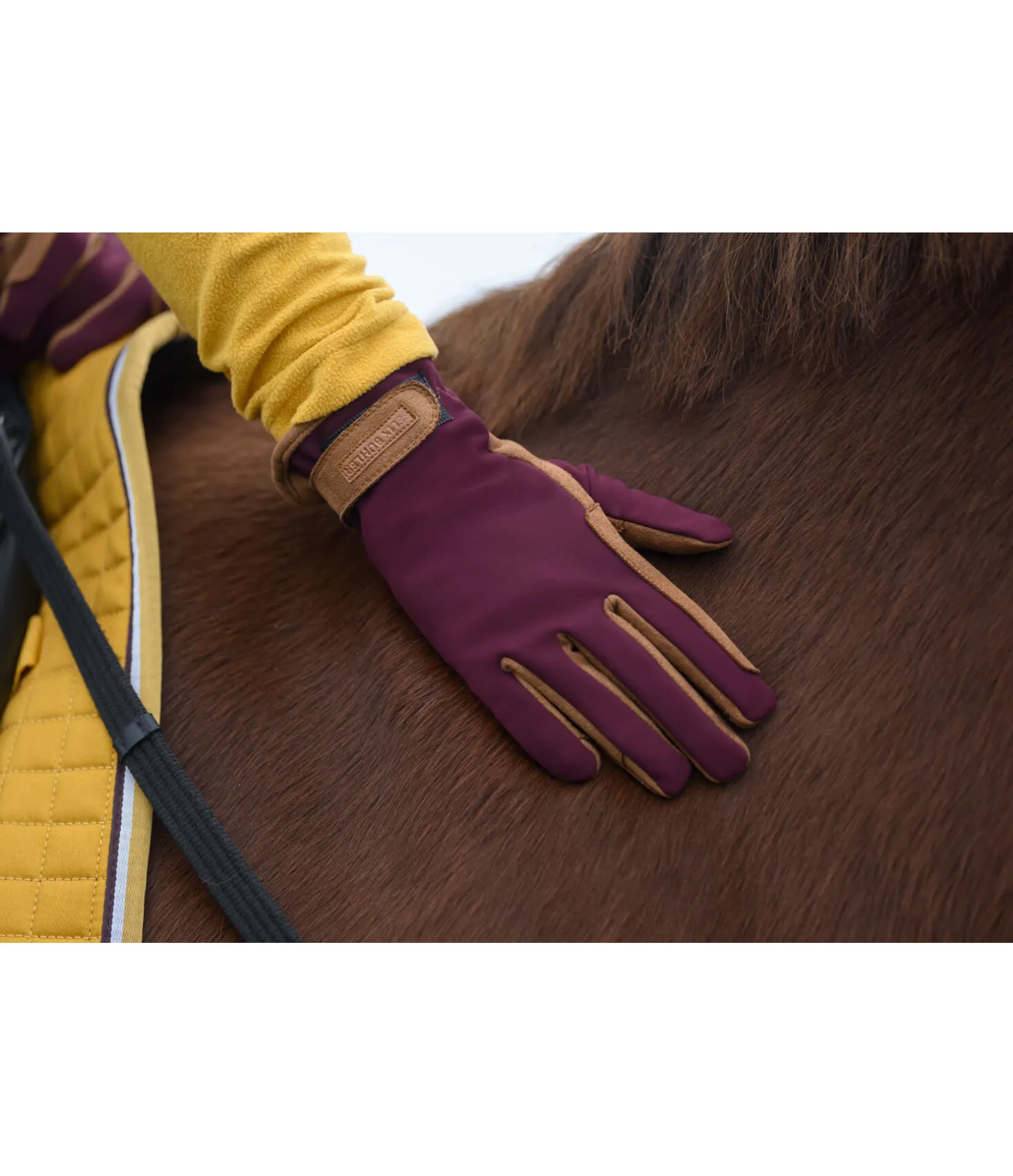 Gants d’équitation d’hiver légers. Dos de la main en Softshell extensible et intérieur doux et souple. Logo en relief sur la patte auto-agrippante. Respirants et coupe-vent. Dessus de la main 71% nylon, 29% élasthanne. Paume 100 % polyester.