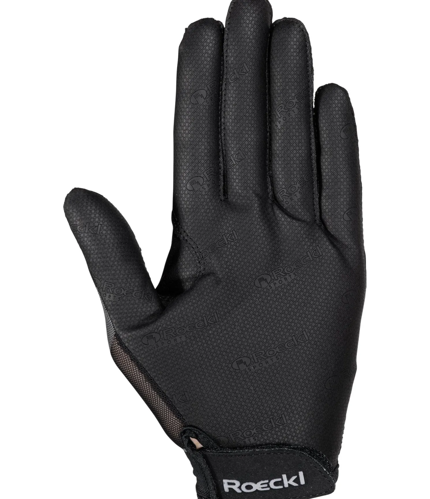 Une légèreté aérienne, idéale en été : le modèle LAILA ! Ces gants d’équitation d’été conçus par le spécialiste des gants Roeckl Sports combinent la finesse de la matière mesh suntanTM perméable au soleil sur le dos de la main au MICRO-AIR très respirant sur la paume. Grâce à ses micro-perforages, cette matière exclusive est particulièrement respirante, ce qui la rend idéale en cas de températures élevées. En plus de sa légèreté, le modèle LAILA est avant tout un gant d’équitation : il s’ajuste comme une seconde peau et apporte une prise fiable sur les rênes – la COMFORT CUT exclusive constitue un empiècement supplémentaire sur l’index. Un plus : le dessus de main en suntanTM permet, en association à la patte auto-agrippante à l’intérieur du poignet, de bronzer uniformément sur le dos de la main. Leur compatibilité avec les écrans tactiles permet d’utiliser un Smartphone même en portant les gants. 86 % polyamide, 14 % élasthanne. Paume : 100 % polyamide.