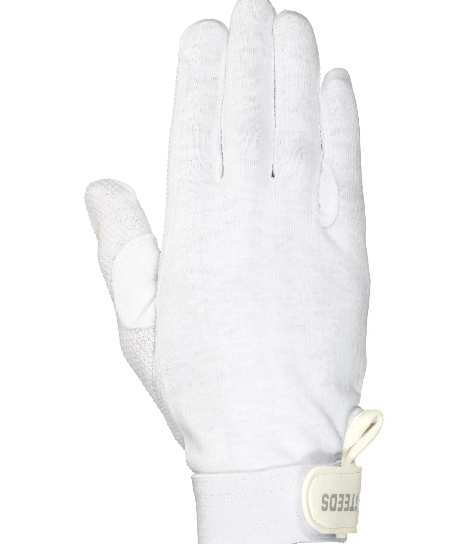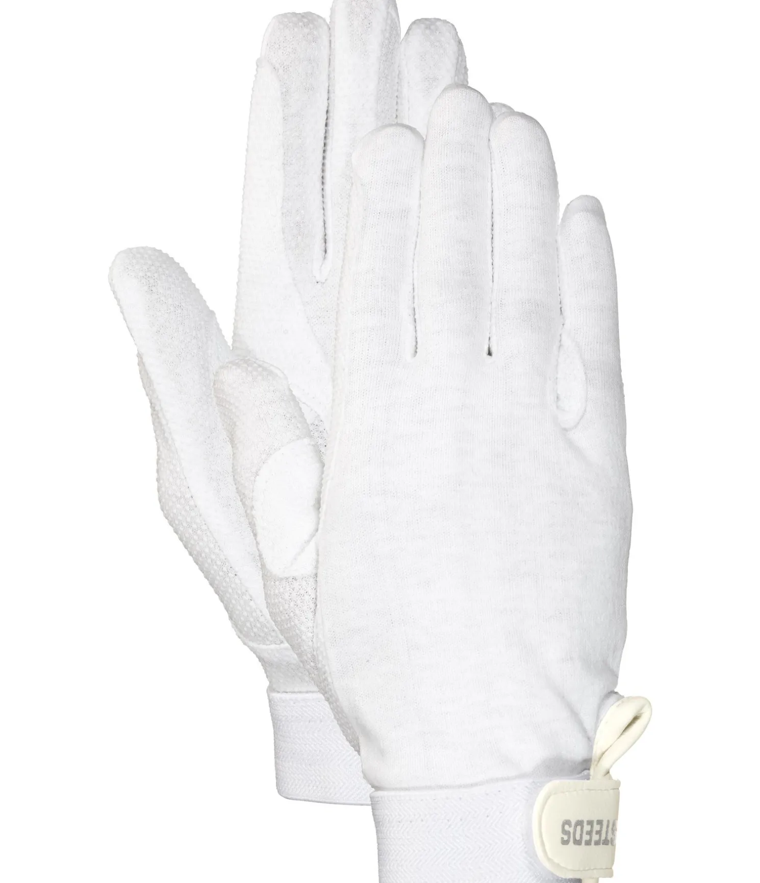 Parfaits gants d’équitation en coton 100 % respirant. Paumes et doigts avec picots PVC. Renforts de rênes. Poignets élastiqués avec patte auto-agrippante. 100 % coton.