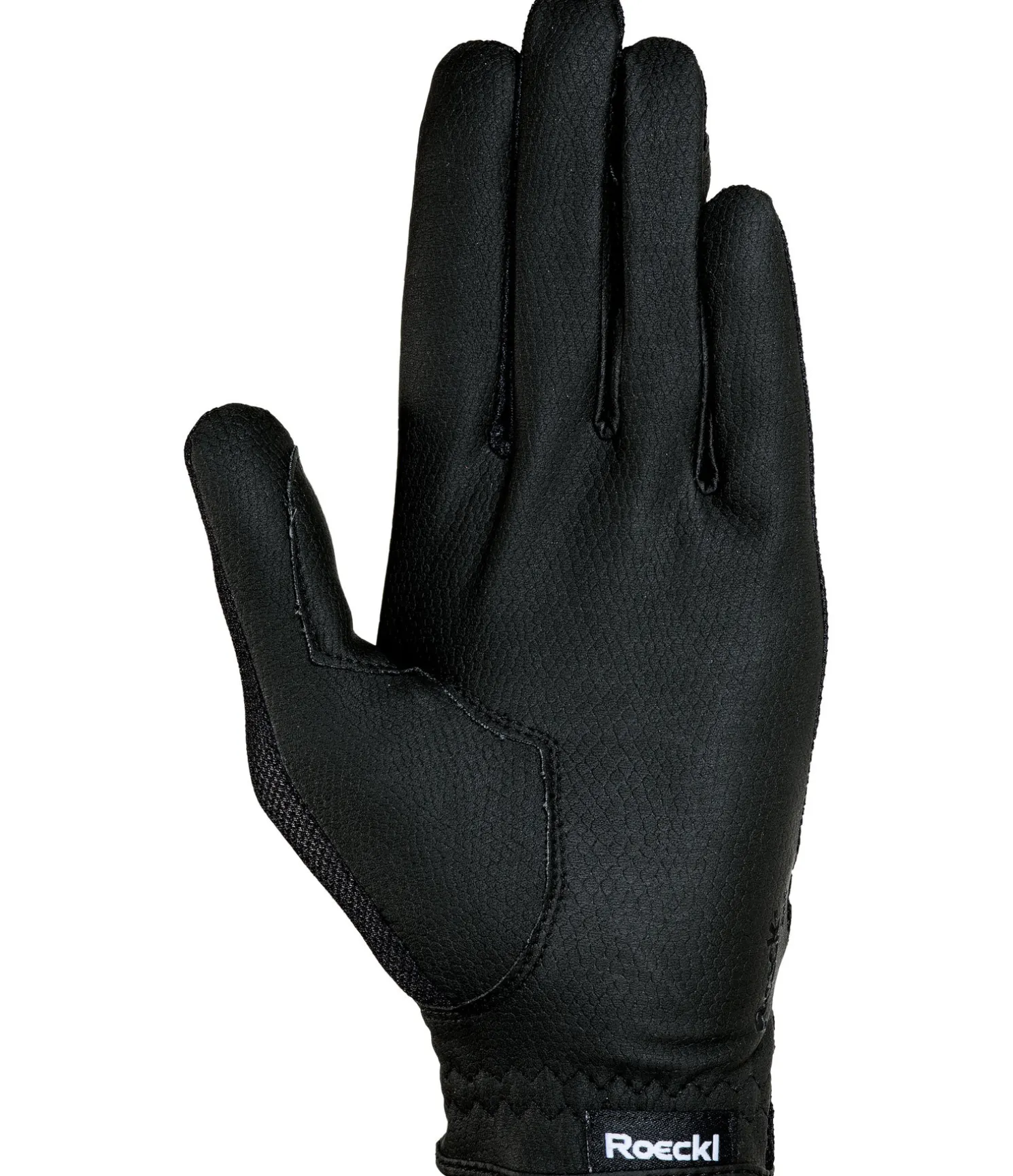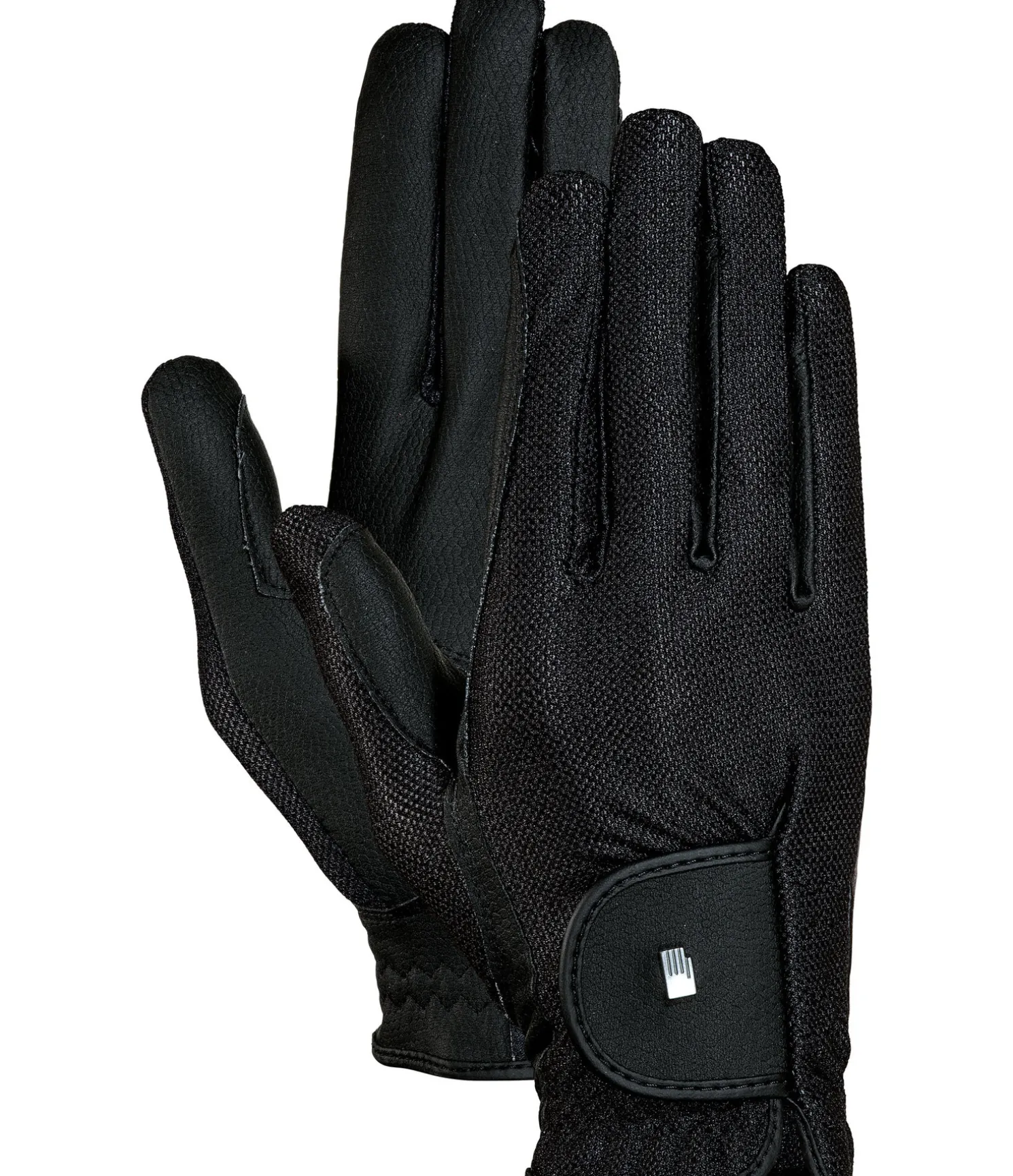 Cavaliers et cavalières le connaissent et l’adorent – l’incomparable classique ROECK-GRIP en matière synthétique souple, respirante et extensible. Comme le modèle de base, la version d’été ROECKL-GRIP LITE arrive à associer sans problème le style sportif avec le style classique-élégant. La paume anti-dérapante ROECKL-GRIP LITE s’associe avec le micro-mesh résistant, respirant et élastique du dos de la main. Grâce à cette combinaison de matières, le cavalier n’a pas l’impression de porter des gants, mais garde un très bon maintien et un très bon contrôle des rênes, avec en plus une liberté de mouvement des doigts très agréable. D’ailleurs, comme pour tous les gants ROECKL, un énorme travail de couture est fait au millimètre près à la main. Le résultat : un gant qui est comme une seconde peau. La large patte auto-agrippante caractéristique avec le sigle ROECKL assure le maintien du gant et est agréable au poignet. Dessus : 83 % polyester, 17 % polyuréthane. Paume : 100 % polyamide.