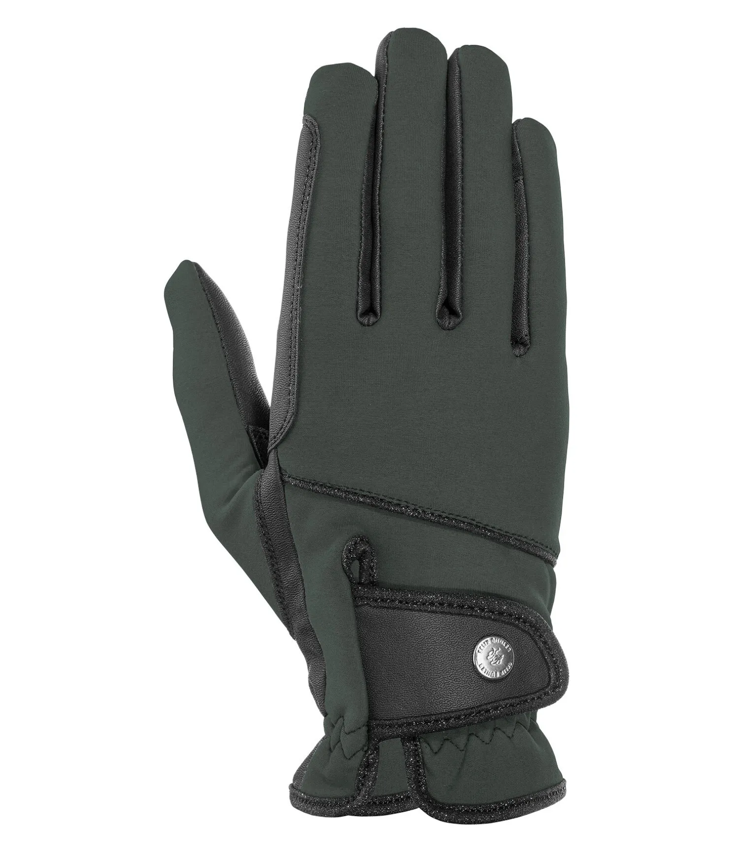 Gants d’équitation d’hiver chics en matière softshell extensible avec doublure chaude. Respirants, coupe-vent et déperlants. Dessus 85 % polyester, 15 % élasthanne. Paume 60 % polyester, 40 % polyuréthane.