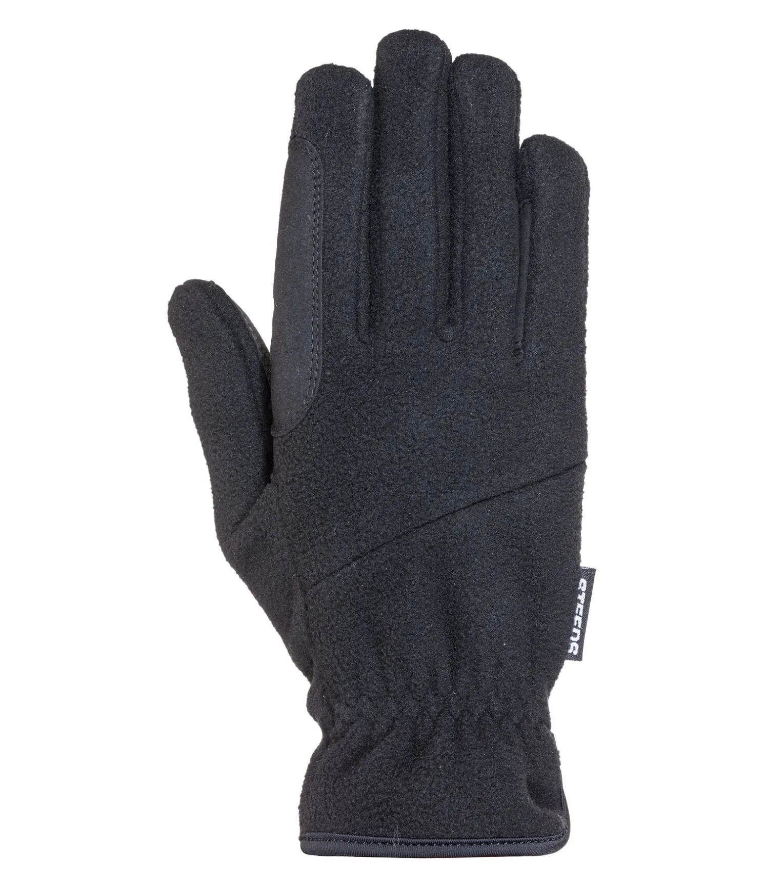 Gants chauds en polaire avec grip en cuir synthétique doux. 100 % polyester.
