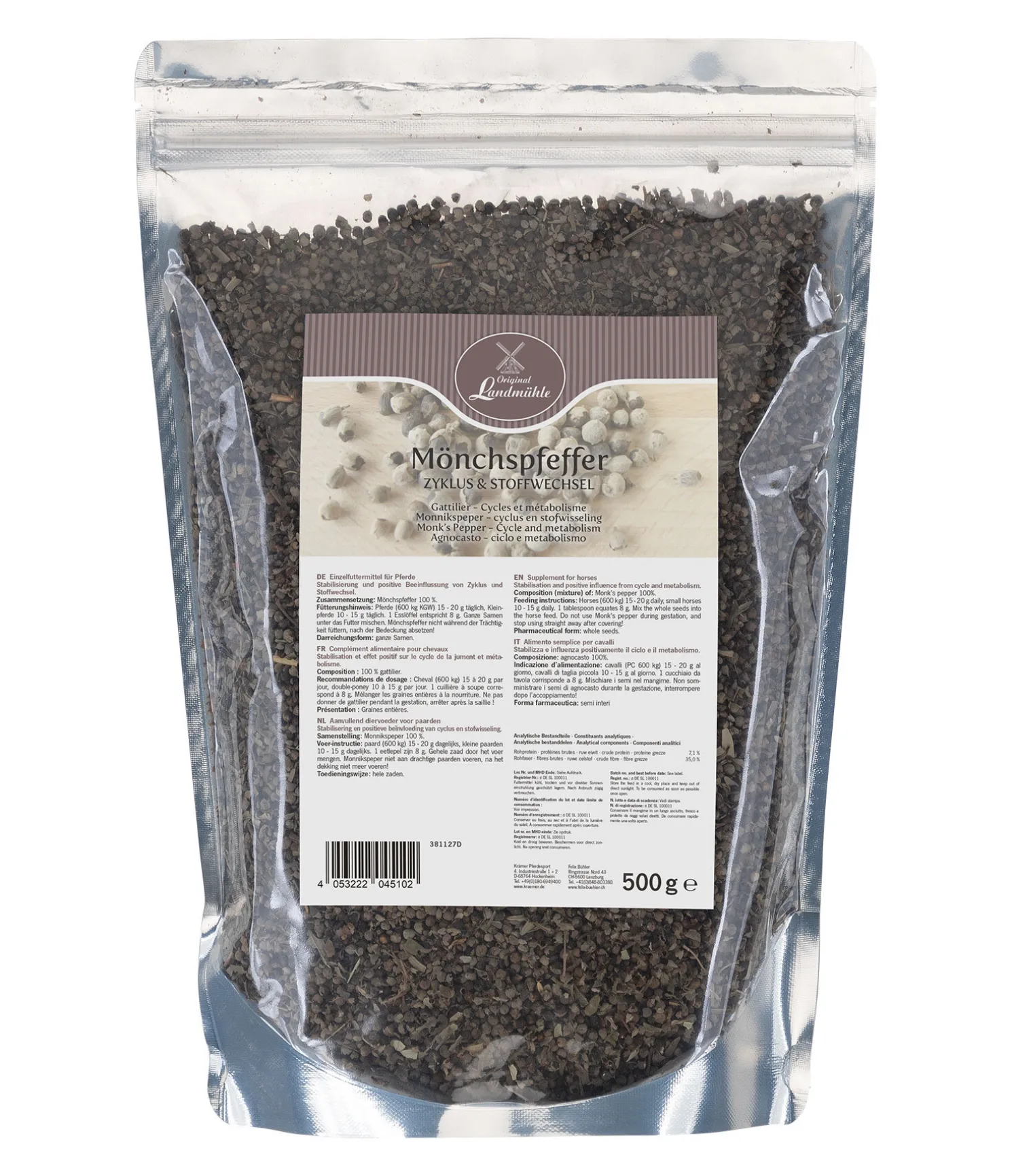 Recommandations de dosage : cheval (600 kg) 15 à 20 g par jour, double-poney 10 à 15 g par jour. 1 cuillère à soupe corespond à env. 8 g. Graines entières à mélanger à la ration. Ne pas administer de gattilier pendant la gestation, arrêter dès la saillie !