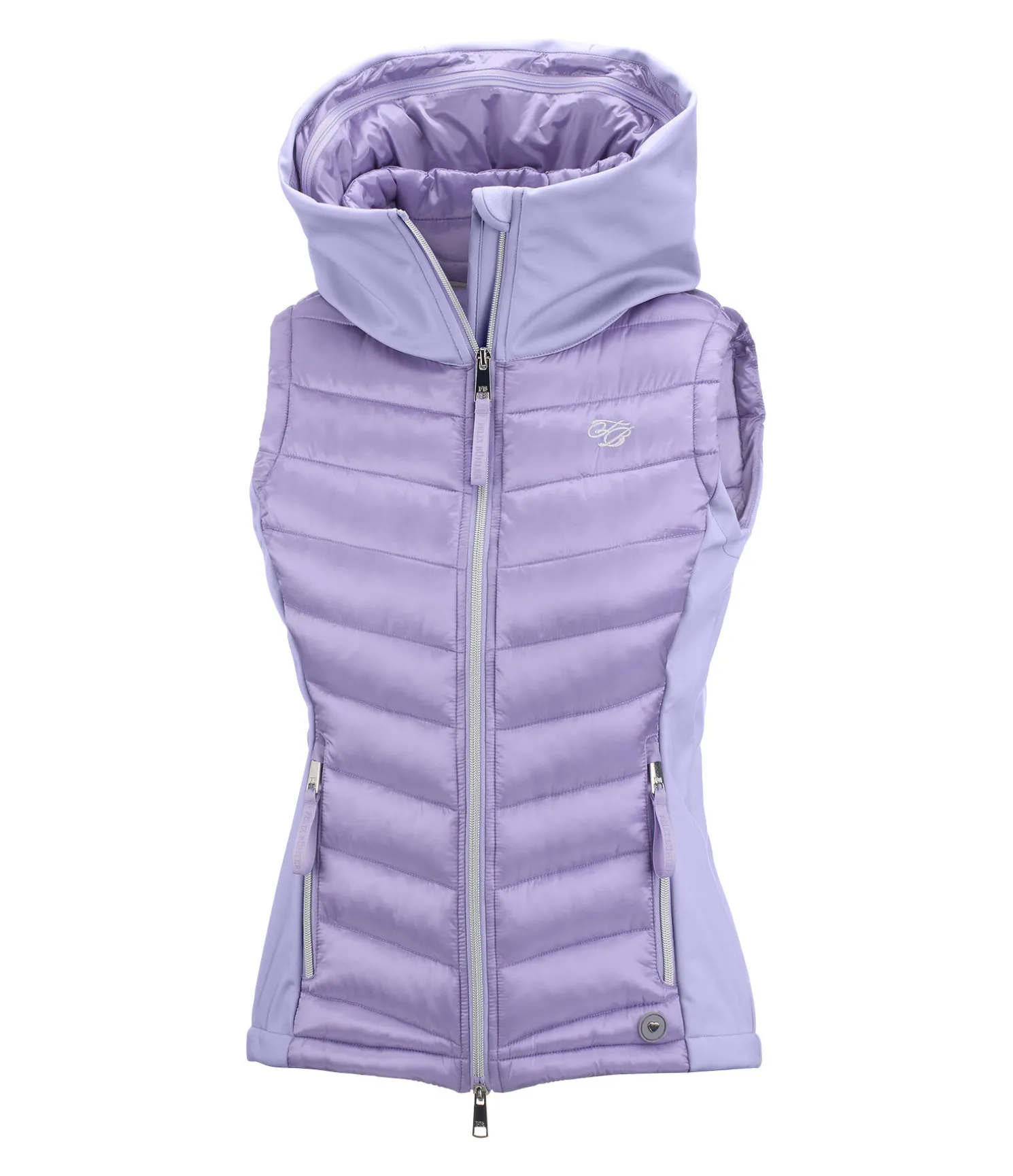 Gilet d’équitation bi-matière élégant. Coupe-vent. Matelassage doux et brillant avec garnissage léger. Col montant et côtés en softshell extensible. Capuche matelassée qui se range dans le large col zippé. Fermeture à glissière double sens brillante avec sous-patte et protège-menton. Deux poches latérales zippées. Taille réglable. Matelassage 100 % nylon ; softshell 92 % polyester, 8 % élasthanne.