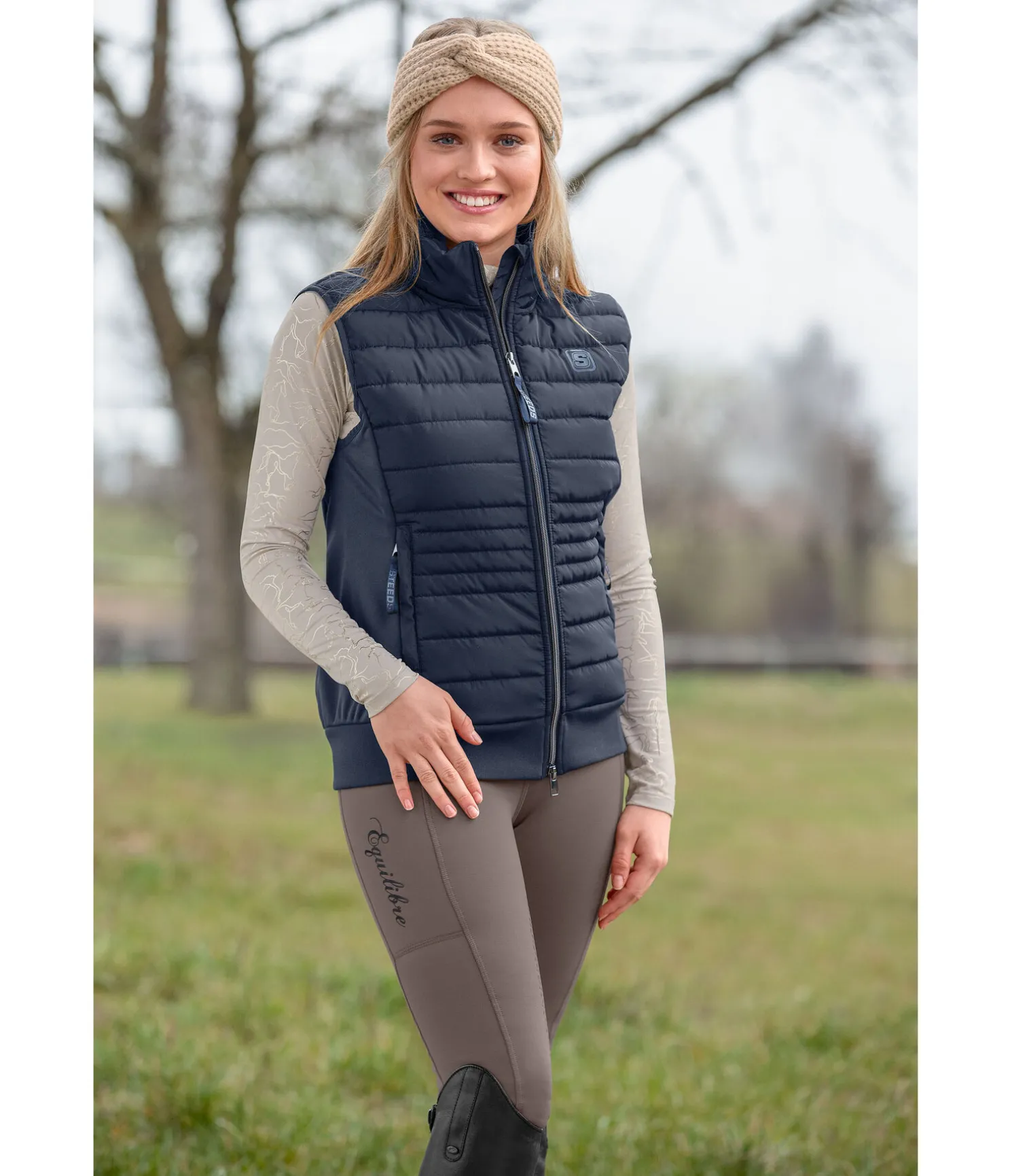 Gilet softshell technique avec inserts matelassés chauds à l’avant. Col montant. Déperlant et coupe-vent. Fermeture à glissière double sens avec sous-patte et protège-menton. 2 poches avant zippées et dissimulées. Finition en bord-côte sur l’ourlet. Logo sur la poitrine et imprimé «Equestrian sportswear» au dos. 100 % polyester.