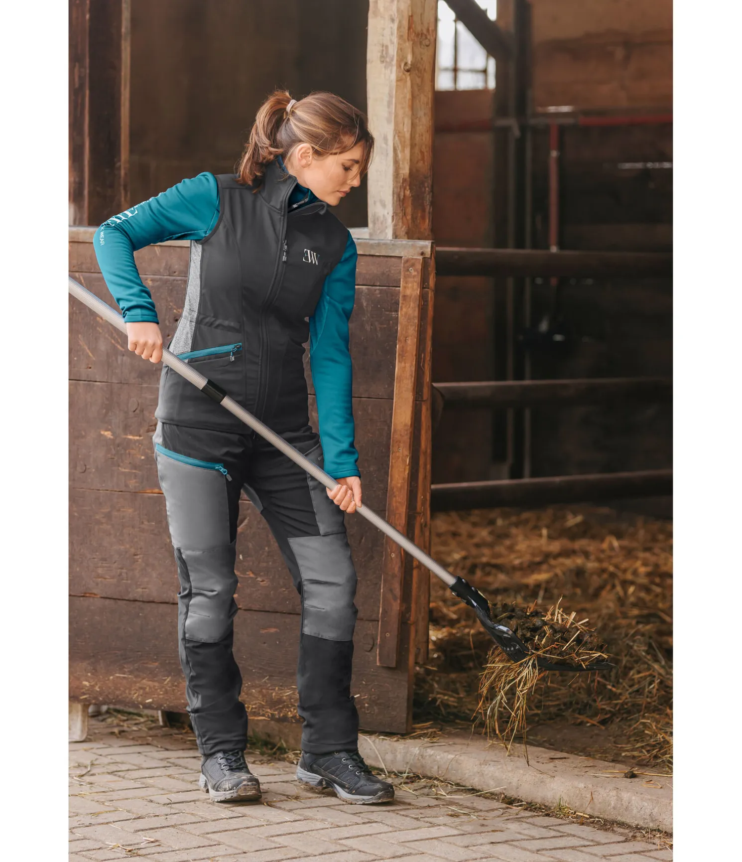 Gilet d’extérieur souple et robuste. Parfait pour toutes les activités à l’écurie et en plein air. Matière anti-salissure, déperlante et coupe-vent. Logos réfléchissants. Inserts en stretch extensible dans 4 directions pour un liberté de mouvement optimale. Col montant doublé en polaire pour un confort inégalé. Fermeture à glissière double sens avec sous-patte et protège-menton. Nombreuses possibilités de rangement avec 1 grande poche arrière, 1 poche zippée avant et 2 poches latérales avec fermeture magnétique. 100 % polyester, inserts stretch 92 % polyester, 8 % élasthanne.