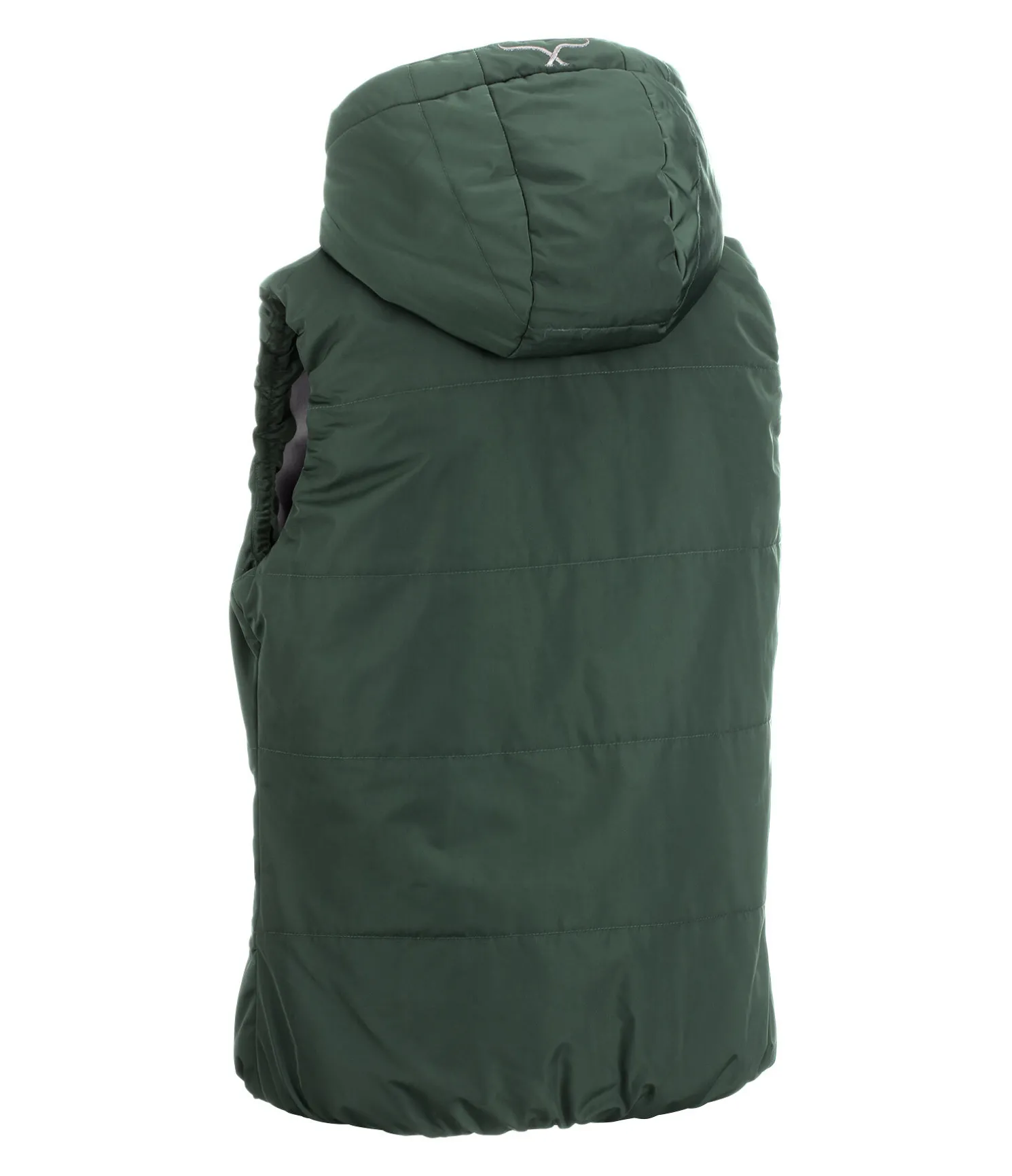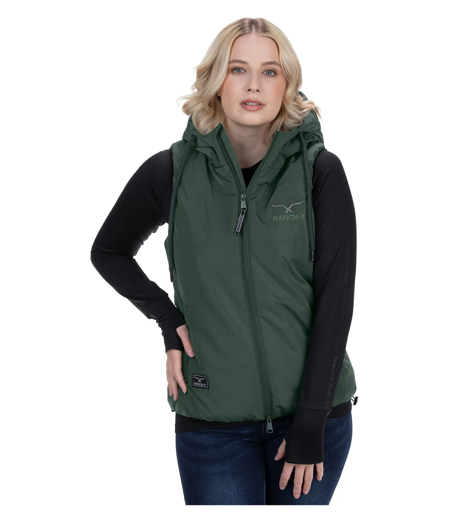Gilet doudoune d’équitation respirant et coupe-vent. Doublure douce en imitation duvet. Capuche ajustable par cordon de serrage. Logo RANCH-X scintillant sur la poitrine et la capuche. Fermeture à glissière double sens. Poches latérales zippées. Élastique de réglage à la taille. 100 % polyester.