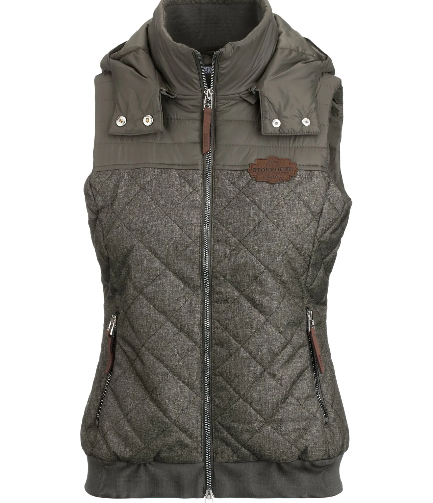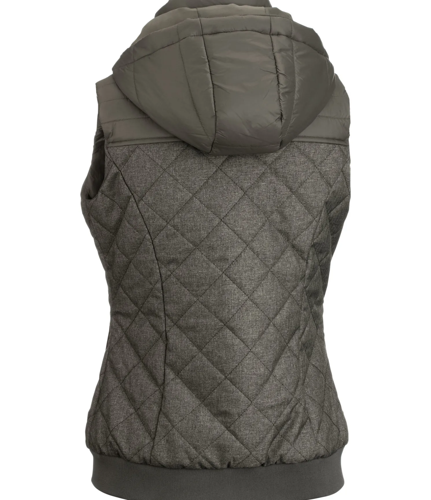 Gilet matelassé tendance. Capuche amovible en mélange de matières coupe-vent. Applications en matière synthétique. Légèrement rembourré. Hanches élastiquées. Fermeture à glissière double sens argentée. 2 poches zippées. Matière 1 : 100 % nylon, matière 2 : 100 % polyester, doublure 100 % polyester.