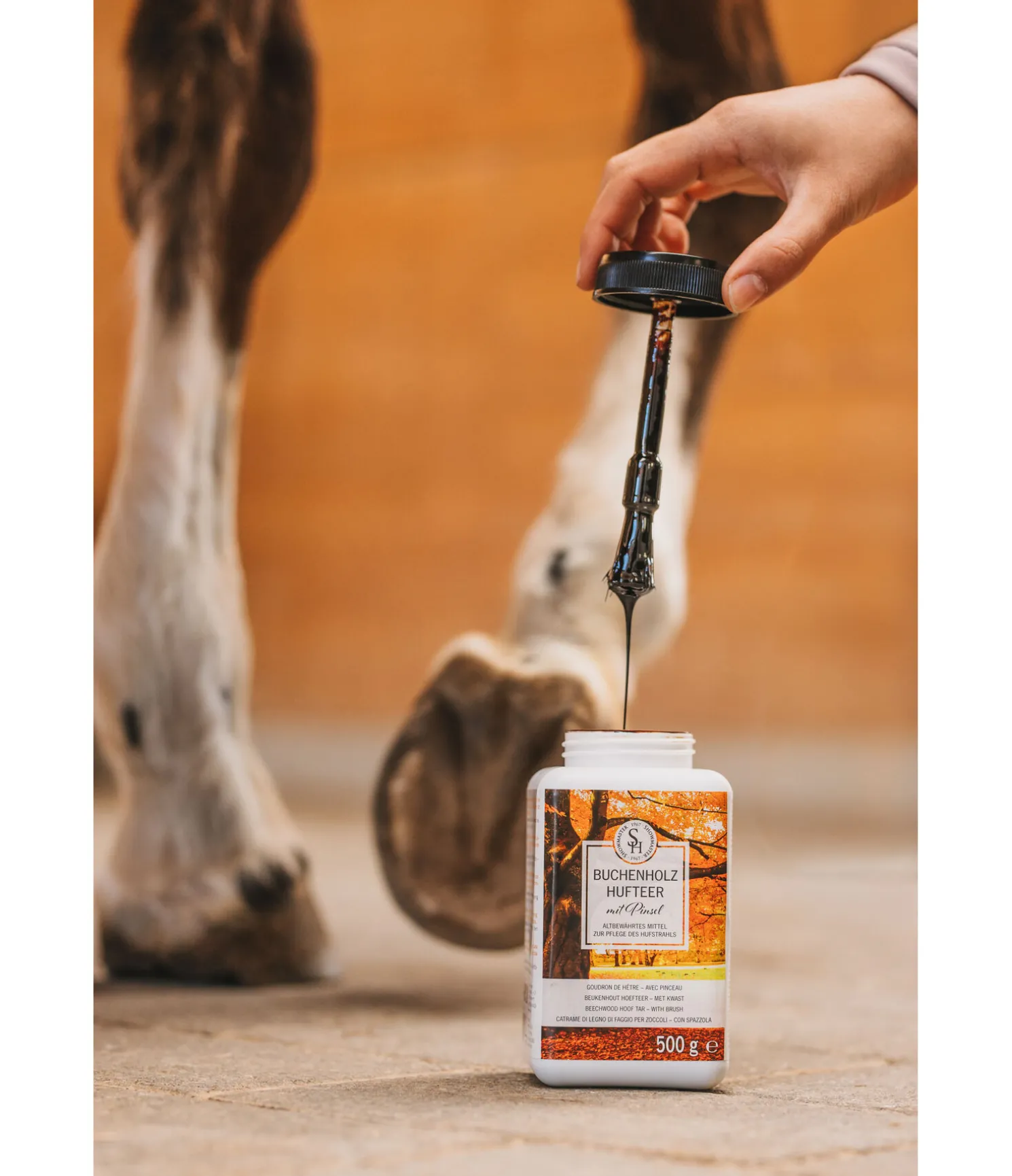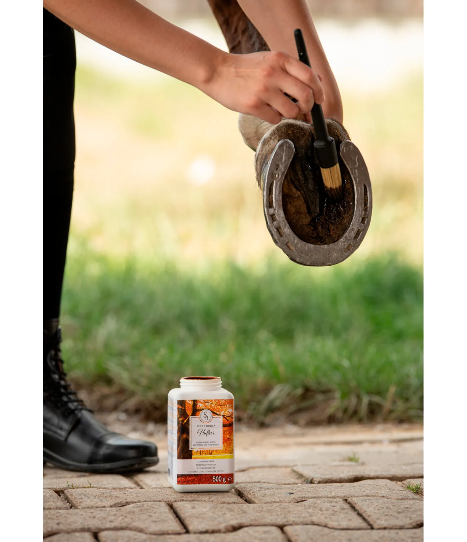 Protège la fourchette et la sole contre l’humidité, la saleté et les bactéries. Application: Nettoyer la sole du sabot et la fourchette et appliquer le goudron finement avec un pinceau. Contient: bois de hêtre.