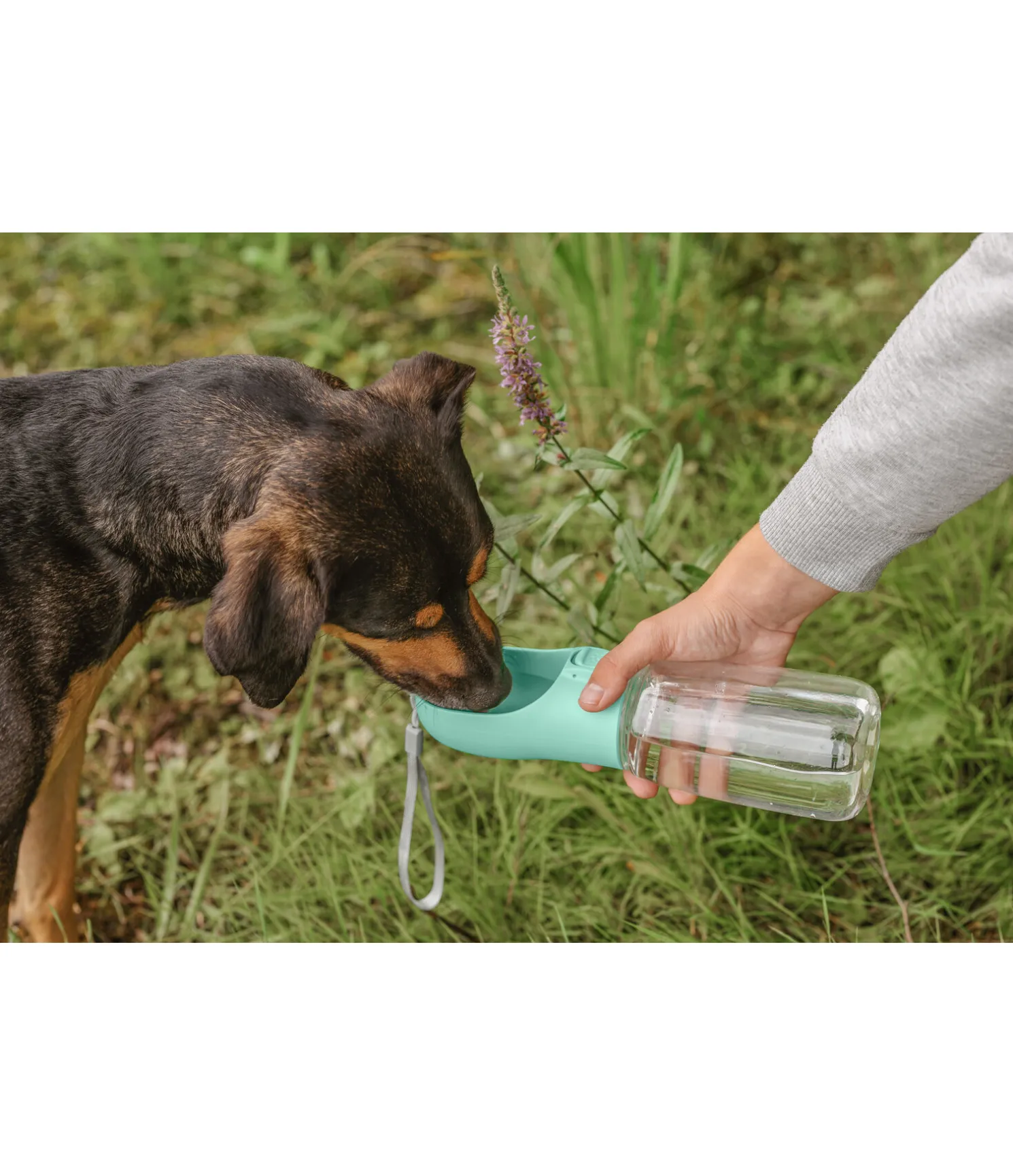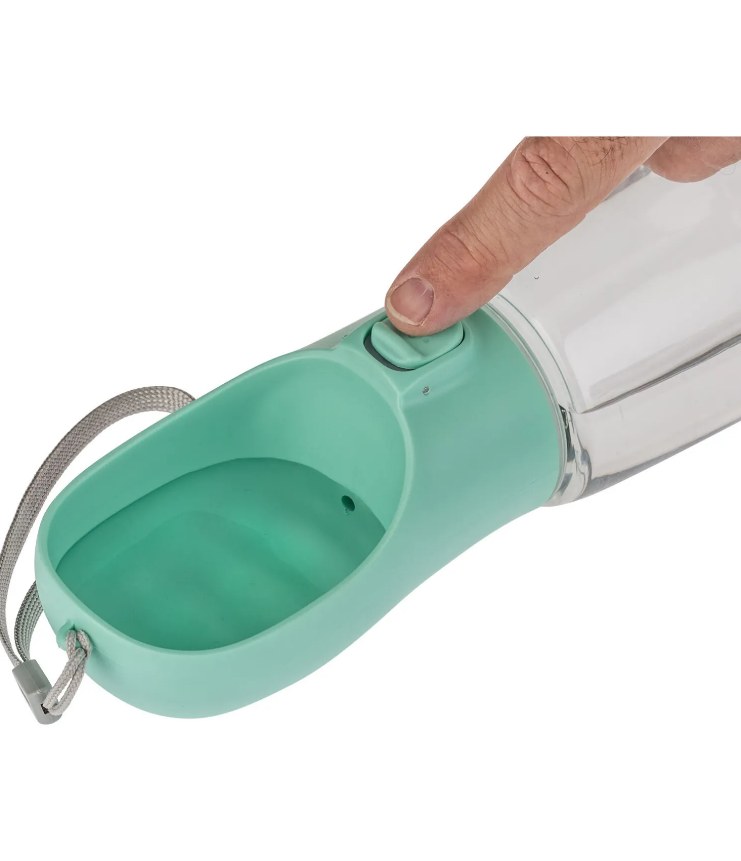 Gourde solide avec écuelle en plastique. Idéale pour les longues promenades et les randonnées. Facilement maniable. Système innovant permettant à l’eau de s’écouler par simple pression sur le bouton. Possibilité de remettre l’eau dans la gourde si le chien n’a plus soif par simple inclinaison et pression sur le bouton. Système anti-fuite. Dragonne. Contenance 550 ml.