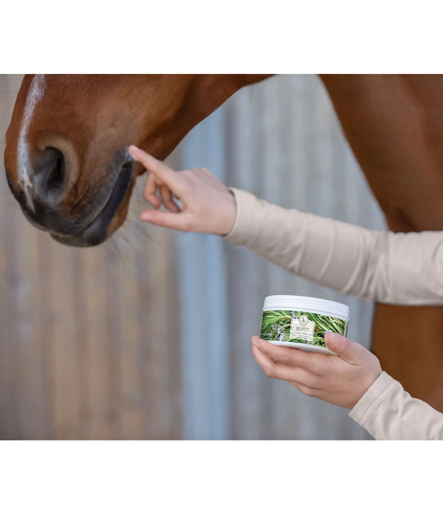 Graisse à traire de qualité supérieure pour les soins intensifs des peaux abîmées. Contient de l’extrait de romarin. Utilisation: appliquer en couche fine sur les parties à traiter.