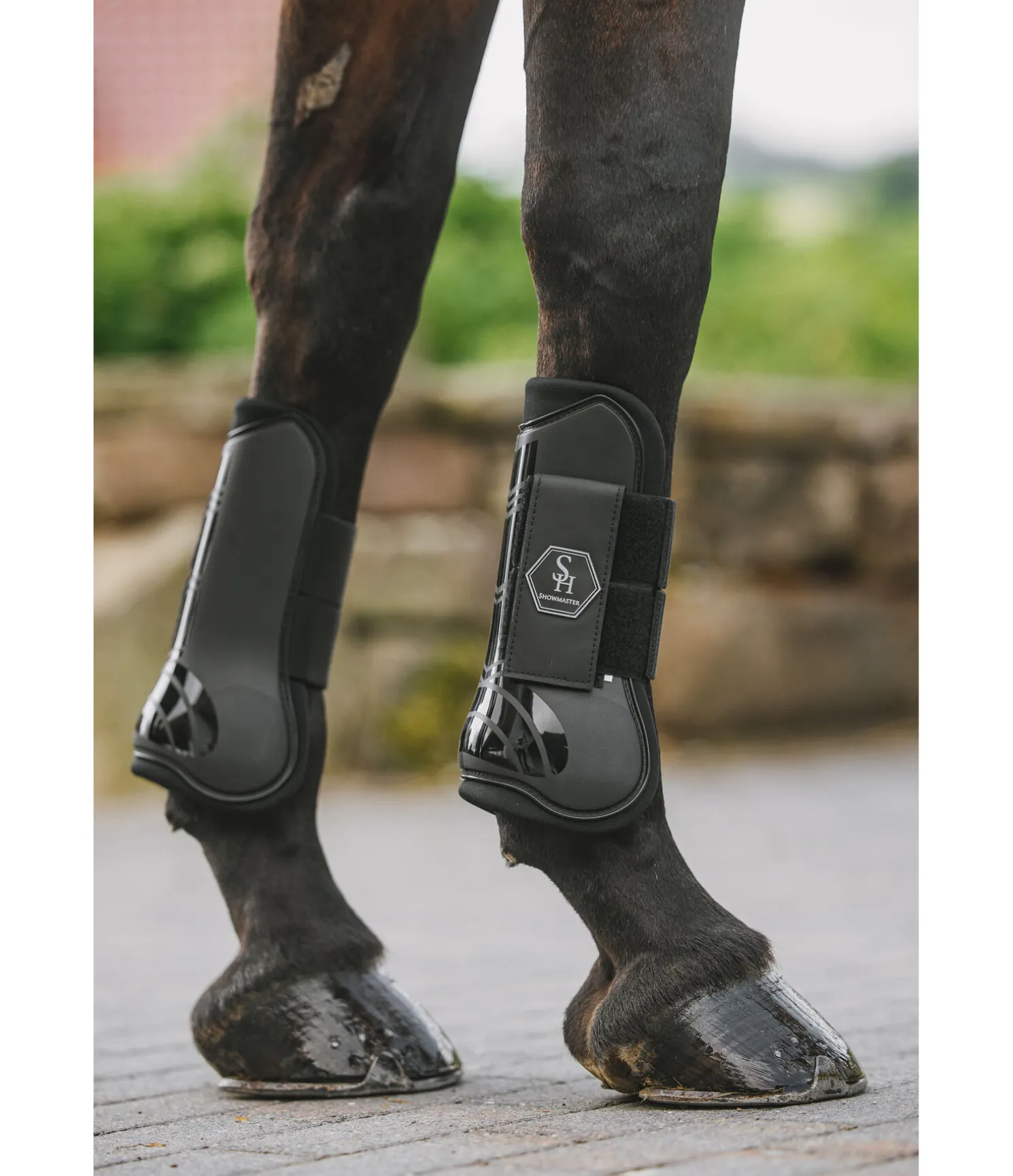 Guêtres anatomiques à coque rigide qui assurent aux tendons une protection et une liberté de mouvement optimales. La coque rigide présente un creux au boulet avec une doublure très douce. Doublure intérieure en caoutchouc chloroprène, 2 pattes auto-agrippantes élastiquées pour un ajustement parfait. Vendues par paire.