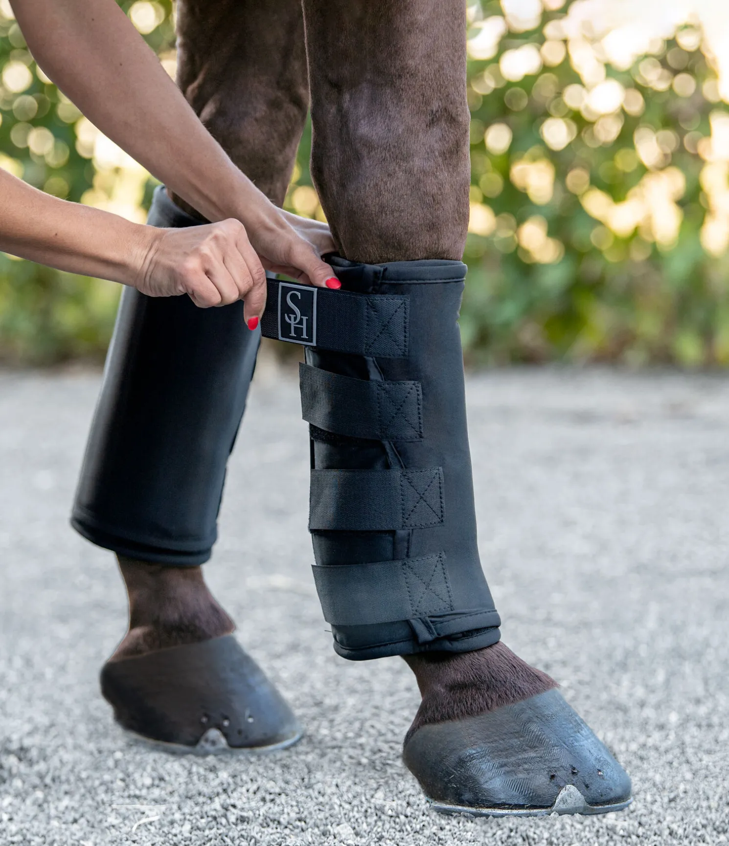 Ces guêtres sont équipées d’une poche à patte auto-agrippante permettant d’y placer des poches de gel chauffant ou rafraîchissant, pour activer la circulation sanguine au niveau des membres et accélérer ainsi le processus de guérison. Empiècement doux en éponge à l’intérieur et extérieur en polyester. 4 pattes auto-agrippantes à l’extérieur. La poche ferme au moyen d’une patte auto-agrippante interne. Mesures : 32 x 37 cm. Poches de gel à commander séparément (ref. 530281).