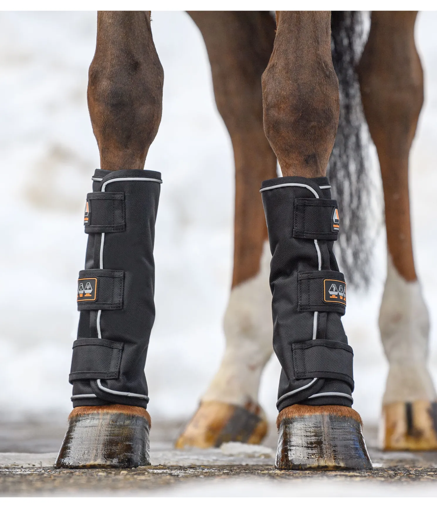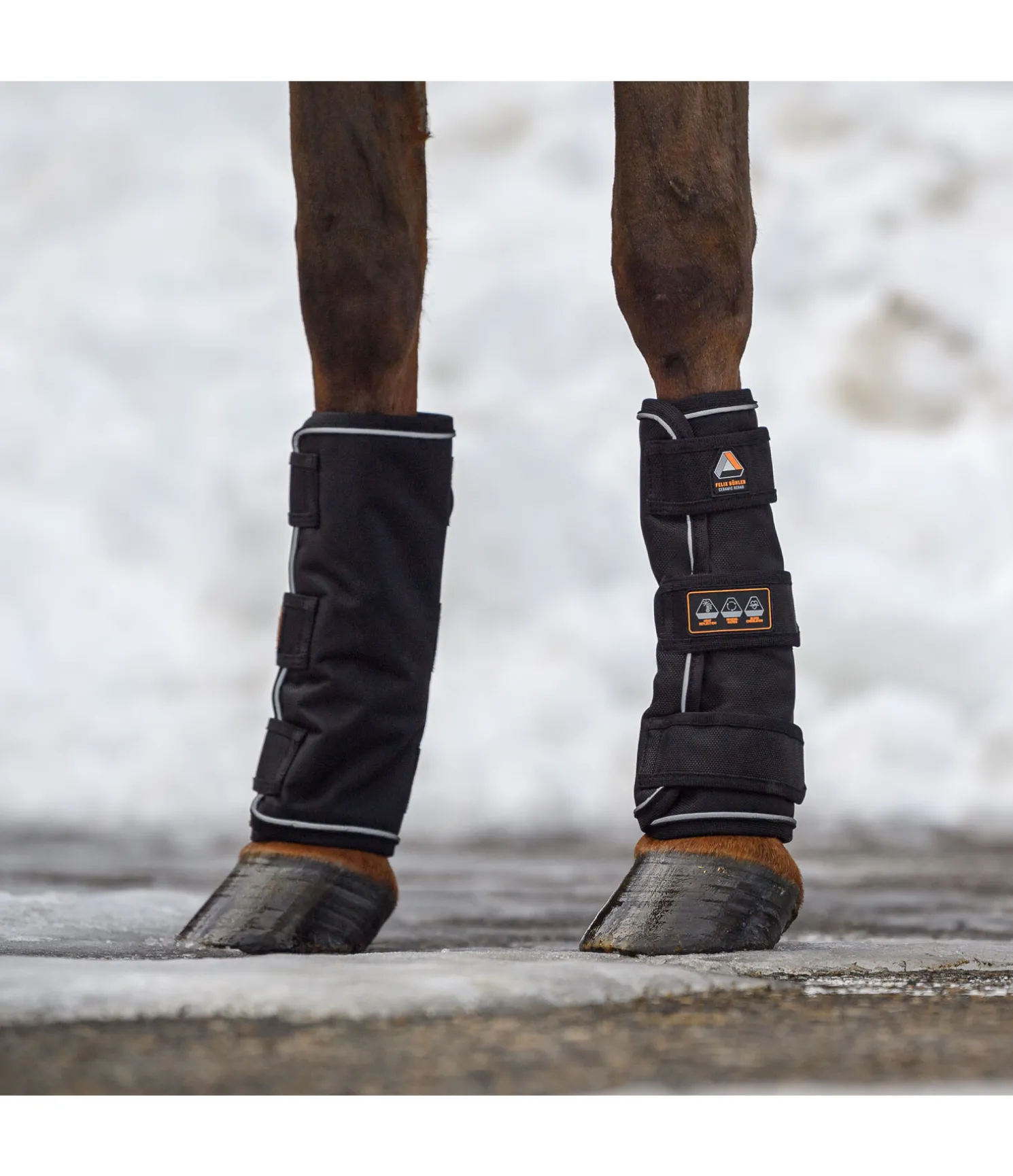 Guêtres d’extérieur fonctionnelles particulièrement solides étant, grâce à leur extérieur en nylon résistant à la déchirure et imperméable (1.680 deniers, colonne d’eau 3.000 mm, respirabilité 3.000 g/m2/24h), parfaitement adaptées au paddock et au pré par mauvais temps. Les fibres de céramique favorisent la circulation sanguine, ce qui peut permettre de soutenir le processus de régénération et de soulager les troubles musculo-squelettiques chroniques. Le passepoil réfléchissant représente une sécurité supplémentaire. 3 pattes auto-agrippantes résistantes permettent un enfilage et un retrait rapides. Conservent leur forme grâce à un garnissage léger (50 g). Leur légèreté et leur coupe droite leur permettent de s’adapter parfaitement à la jambe du cheval, sans réduire sa liberté de mouvement. Lavage en machine à 30°C. Extérieur 100 % nylon, doublure en matière respirante Air mesh avec fibres de céramique fondues. Remarque : Ne pas les utiliser dans de grands espaces très boueux ou avec des flaques profondes. L’humidité pourrait pénétrer dans les guêtres par le bas ; la doublure n’est pas imperméable. Nous déconseillons aux femmes enceintes ainsi qu’aux animaux en gestation l’utilisation des articles contenant des fibres de céramique. Vendues par paire.