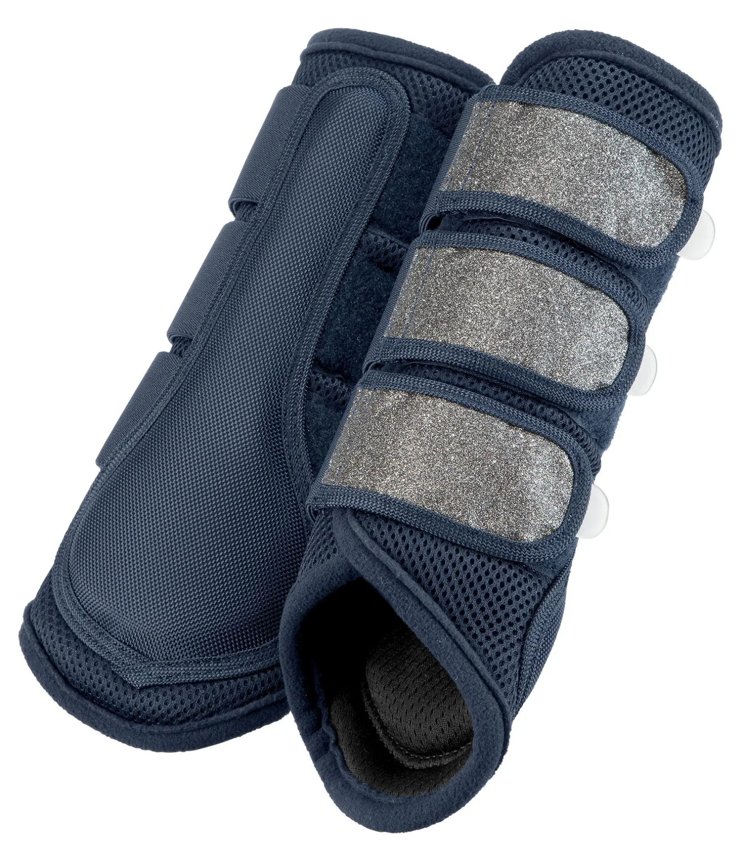 Guêtres pour les postérieurs légères, souples et particulièrement respirantes en matière Air Mesh qui permet une circulation de l’air permanente. Inserts scintillants sur les attaches et pattes auto-agrippantes élastiquées pour un ajustement optimal. Renfort sur la face intérieure en tissu d’extérieur 600 deniers pour une protection supplémentaire contre les chocs. Bord en polaire douce. 100 % polyester. Vendues par paire.