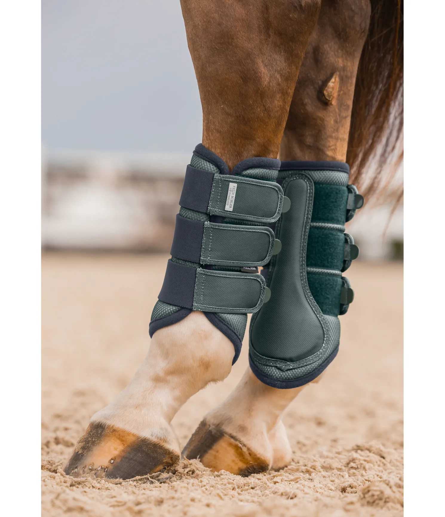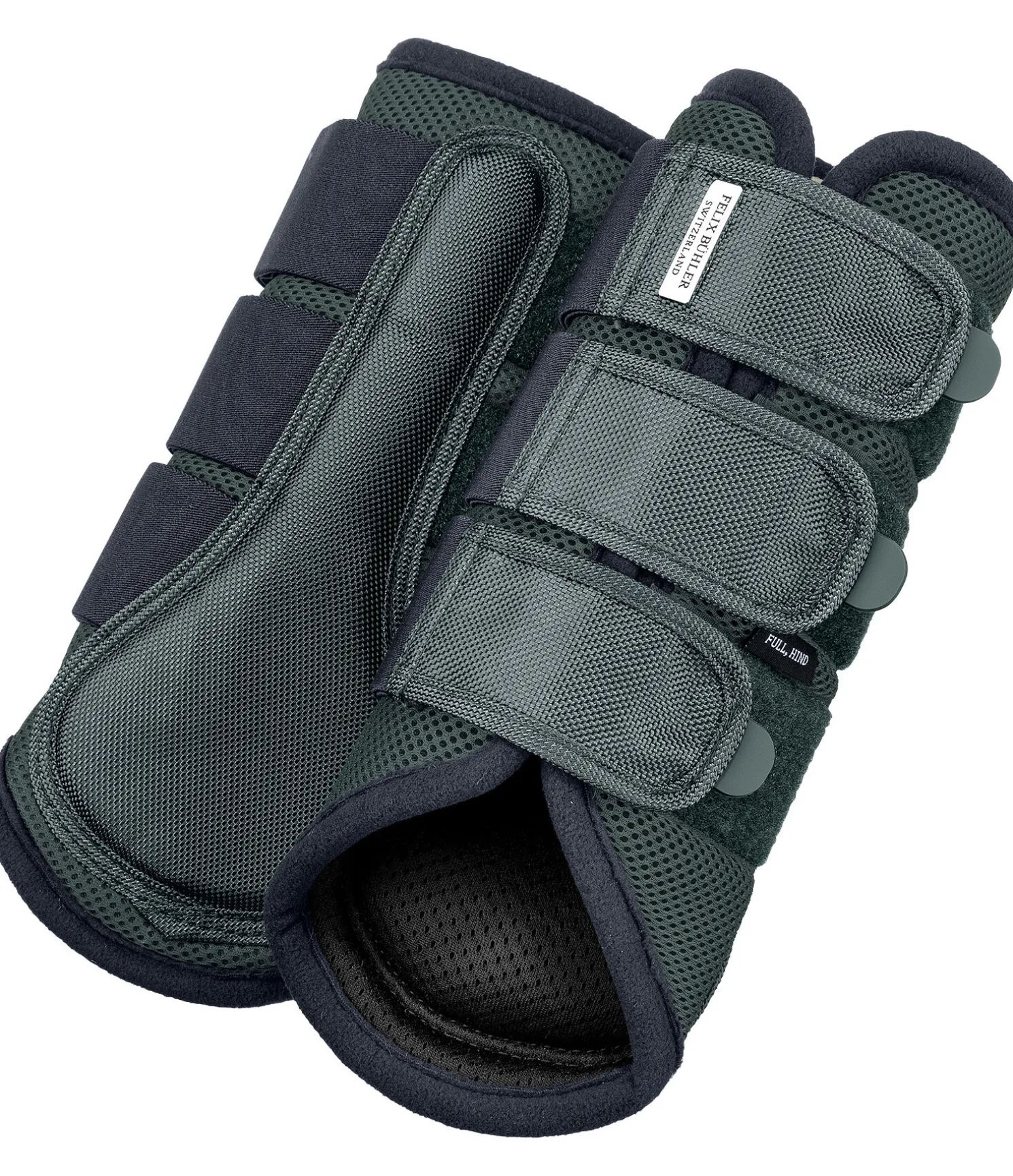 Guêtres souples pour postérieurs. Mesh extrêmement respirant permettant une circulation optimale de l’air. Pattes auto-agrippante élastiquées pour un ajustement parfait. Petit plaque métallique avec logo. Renfort sur la face intérieure pour une protection supplémentaire contre les chocs. Bordure en polaire pour éviter les frottements. 100 % polyester. Vendues par paires.
