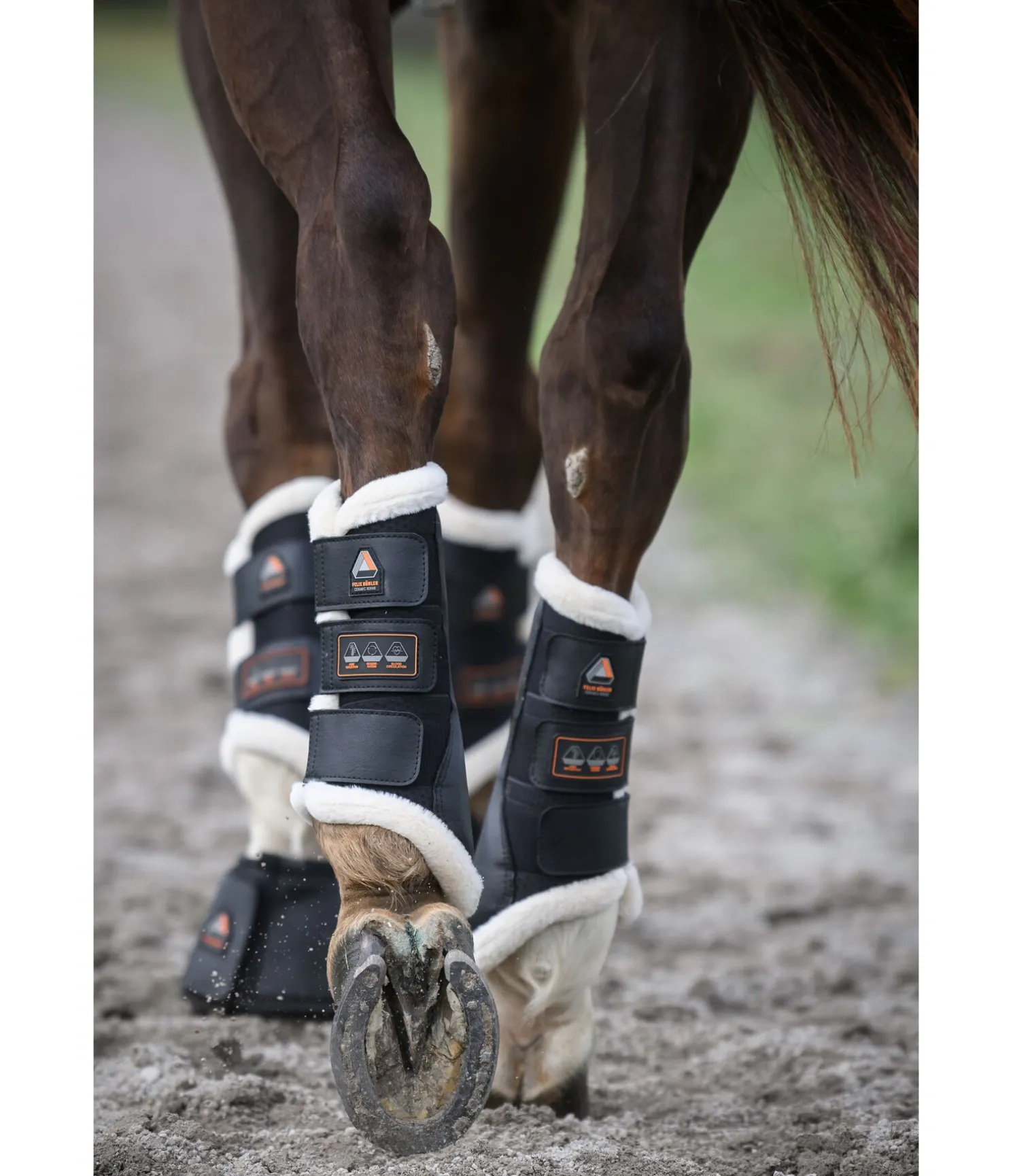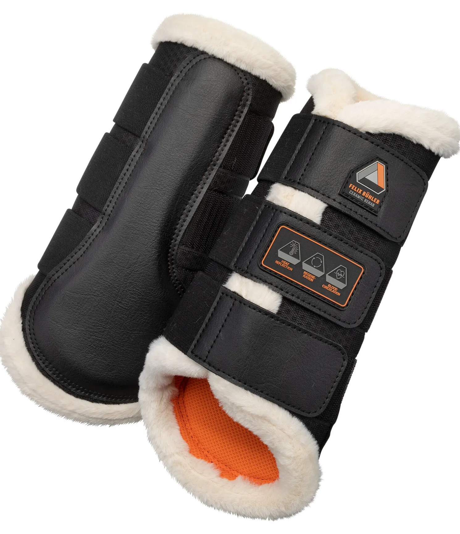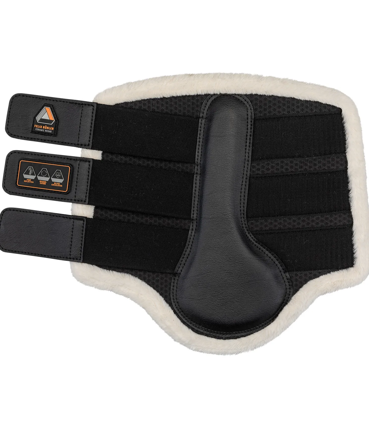 Guêtres anatomiques respirantes pour les antérieurs. Tissu à mailles alvéolées 3D de qualité supérieure qui permet une circulation de l’air optimale évitant l’accumulation de chaleur. La doublure intérieure respirante est en mesh contenant des fibres de céramiques qui réfléchissent la chaleur corporelle sous forme de rayonnement infrarouge ce qui stimule la circulation sanguine. Les guêtres Ceramic Rehab sont particulièrement adaptées aux chevaux avec des antécédants médicaux et peuvent aider à l’échauffement. (IMPORTANT : elles ne remplacent PAS l’échauffement). Le rembourrage sur l’intérieur de la jambe est en synthétique robuste et lavable et a une fonction anti-chocs. Bordure en polaire Teddy douce pour protéger des frottements et garantir un grand confort. 3 pattes auto-agrippantes avec inserts élastiqués pour un maintien sûr. Robustes et lavables. Synthétique 100 % polychlorure de vinyle (PVC). Polaire Teddy, doublure intérieure et mesh 100 % polyester. Mousse 100 % élastomère thermoplastique. Patte auto-agrippante 100 % nylon.