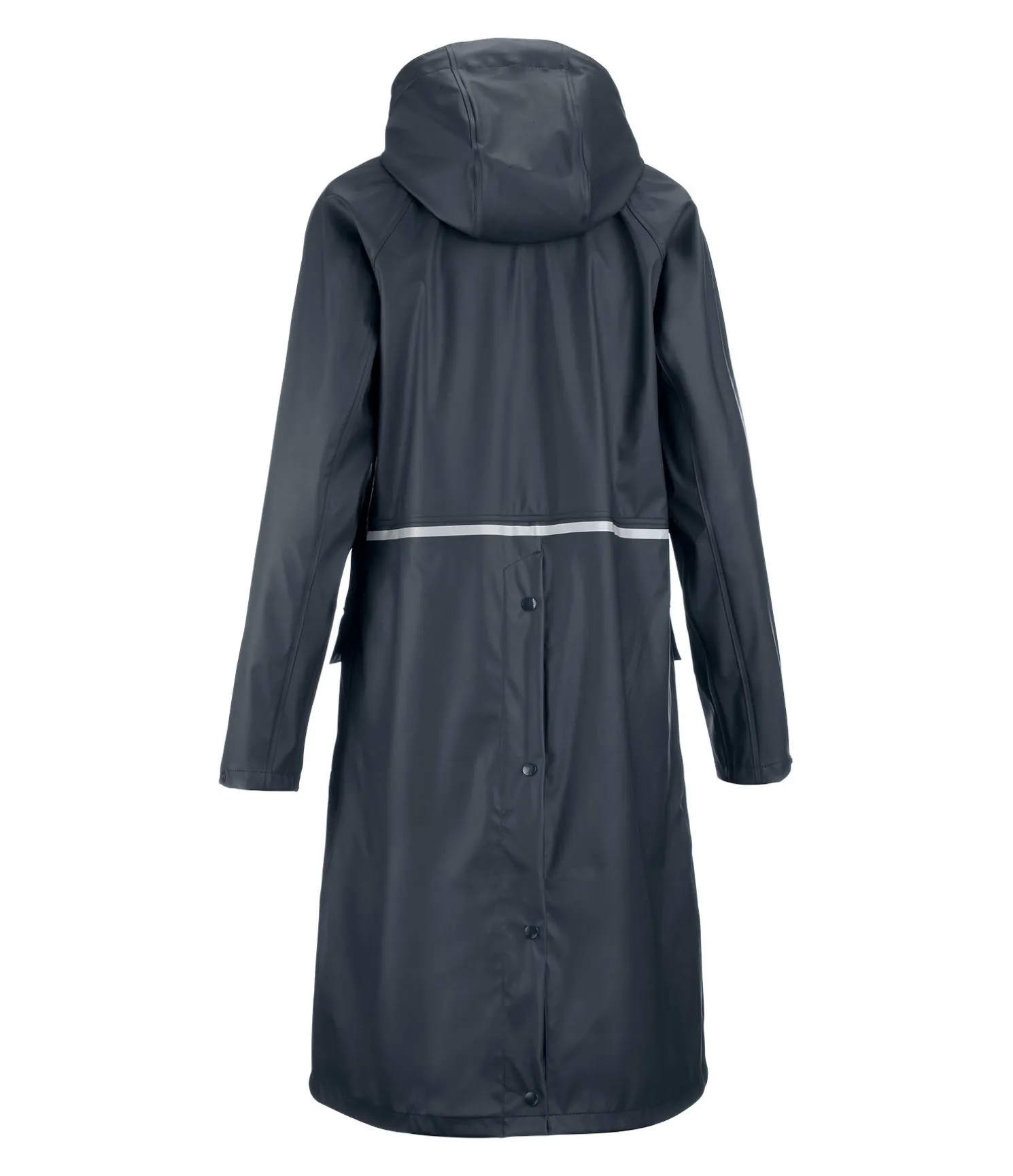 Imperméable d’équitation très long et confortable. Longue fente cavalière doublée. Capuche réglable avec système de fixation dans le dos. Imperméable (5 000 mm) et coupe-vent. Courroies de jambes réglables pour maintenir l’imperméable en place lors de la pratique de l’équitation. Fermeture à glissière double sens dissimulée avec sous-patte et protège-menton. Bas de manches réglables. 2 poches à rabat avec imprimé Felix Bühler réfléchissant. Logo réfléchissant sur la poitrine. Passepoil réfléchissant dans le dos. 100 % polyuréthane.