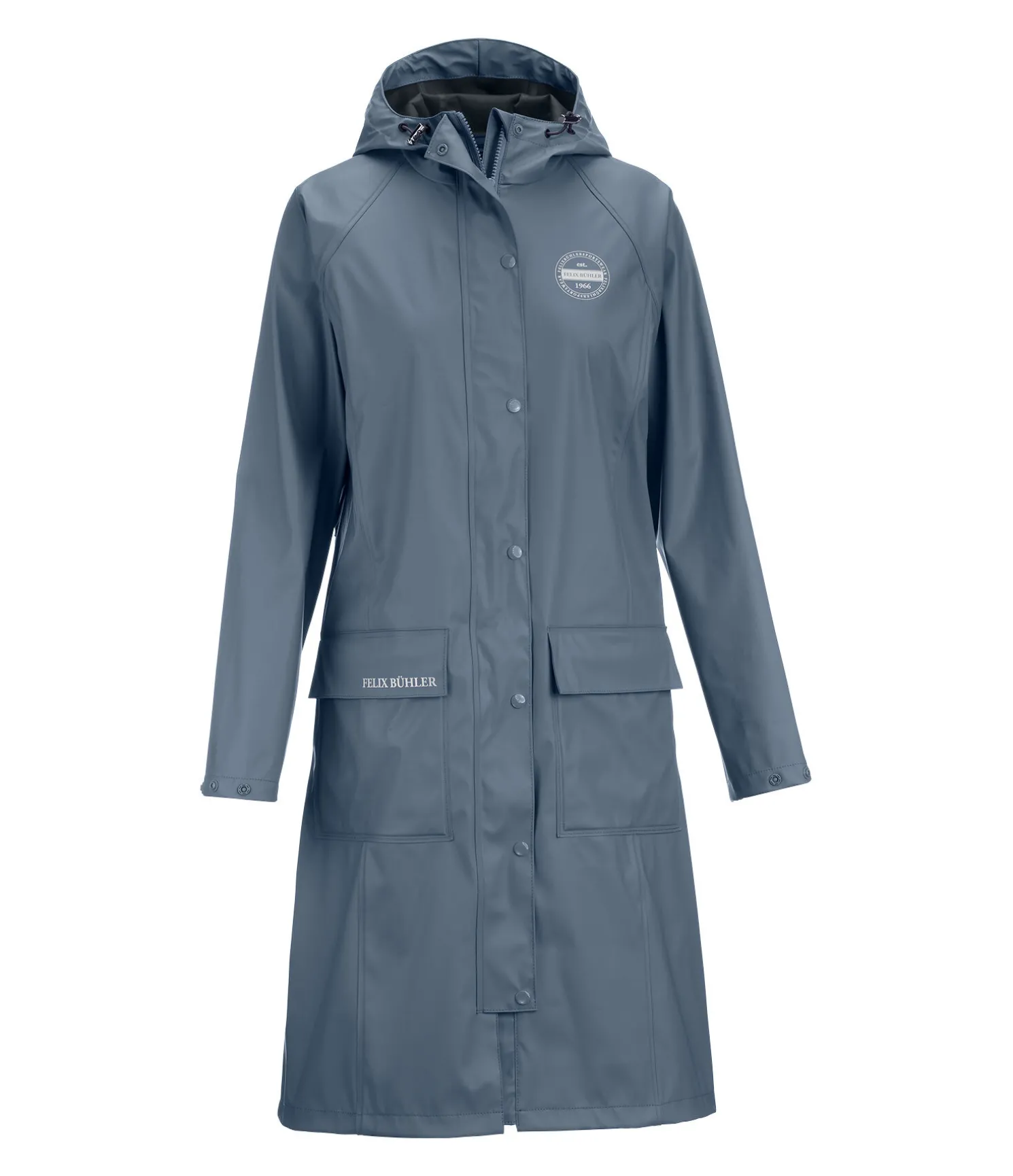 Imperméable d’équitation très long et confortable. Longue fente cavalière doublée. Capuche réglable avec système de fixation dans le dos. Imperméable (5 000 mm) et coupe-vent. Courroies de jambes réglables pour maintenir l’imperméable en place lors de la pratique de l’équitation. Fermeture à glissière double sens dissimulée avec sous-patte et protège-menton. Bas de manches réglables. 2 poches à rabat avec imprimé Felix Bühler réfléchissant. Logo réfléchissant sur la poitrine. Passepoil réfléchissant dans le dos. 100 % polyuréthane.