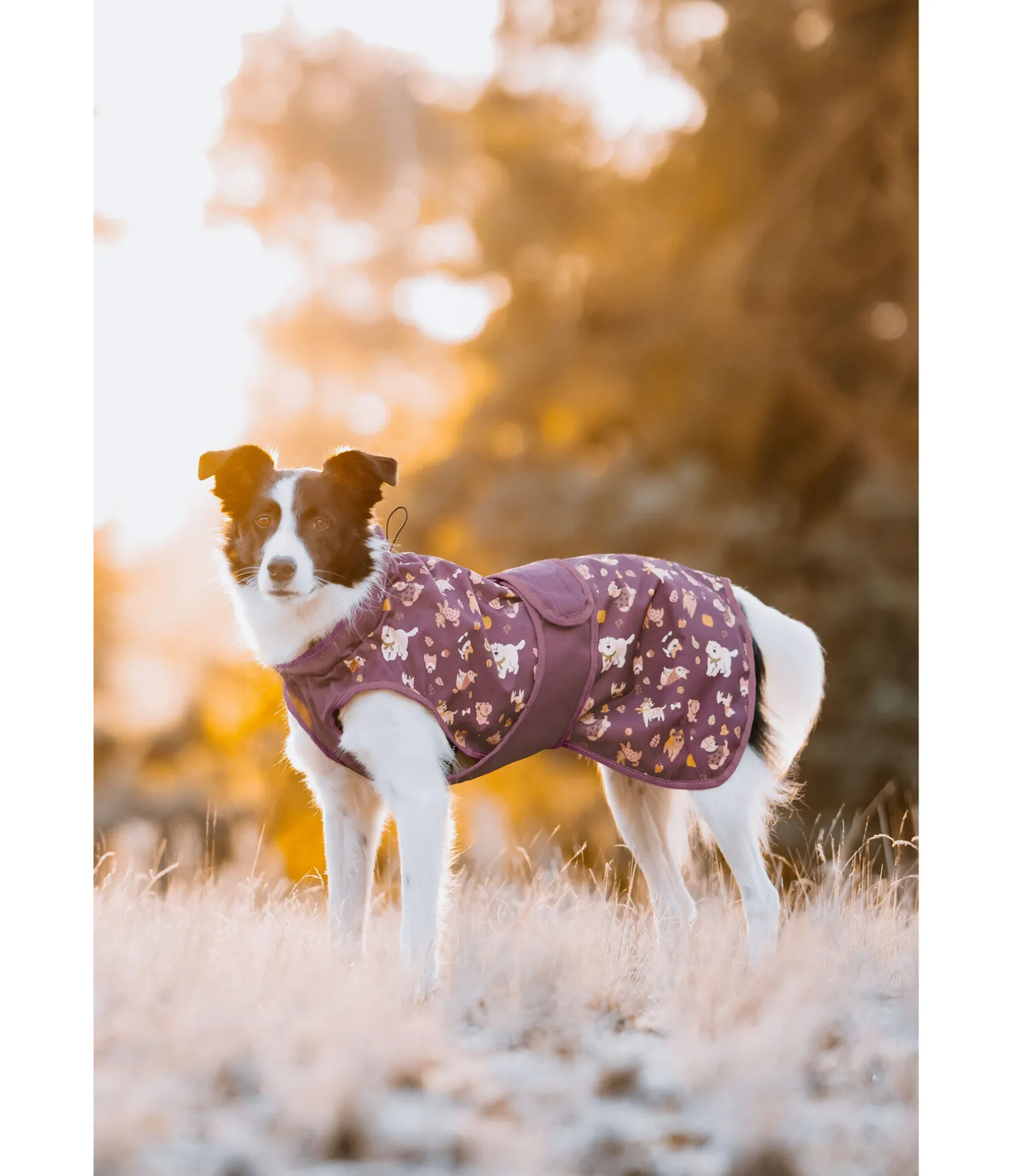 Manteau imperméable (3.000 mm), respirant (3.000 g/m2/24h) et coloré avec motifs automnaux et liseré réfléchissant. Idéal pour les journées d’automne humides et froides. Dessus en polyester Oxford 600 deniers robuste et résistant à la déchirure. Réglable au cou par cordon de serrage et au poitrail par patte auto-agrippante à fermer dans le dos pour le meilleur ajustement. Passage de laisse zippé étanche dans le dos et passage de collier au col. Des courroies de cuisses dissimulées permettent d’éviter que le manteau ne glisse lorsque le chien s’amuse, sans pour autant le gêner. Découpe au niveau des épaules pour une plus grande liberté de mouvement. 100 % polyester.