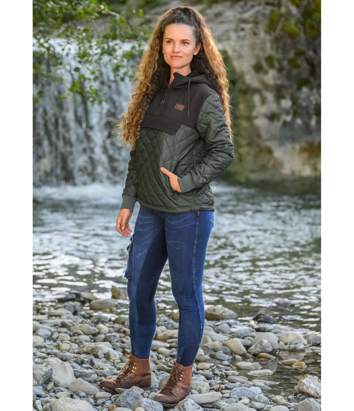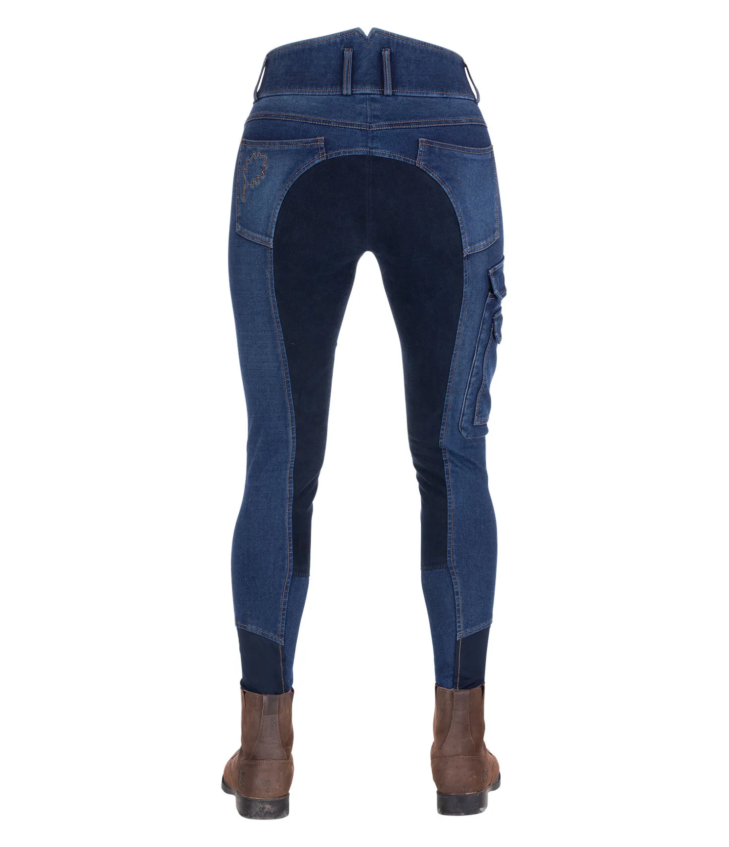 Pantalon d’équitation en jean, confortable et élastique. Taille haute. Effet délavé. Fond intégral en matière synthétique de grande qualité. Large poche sur la cuisse droite, petite poche zippée et deux poches refermables par patte auto-agrippante. Bas de jambe élastiqué pour un confort optimal. 60 % coton, 24 % polyester, 10 % viscose, 6 % élasthanne.