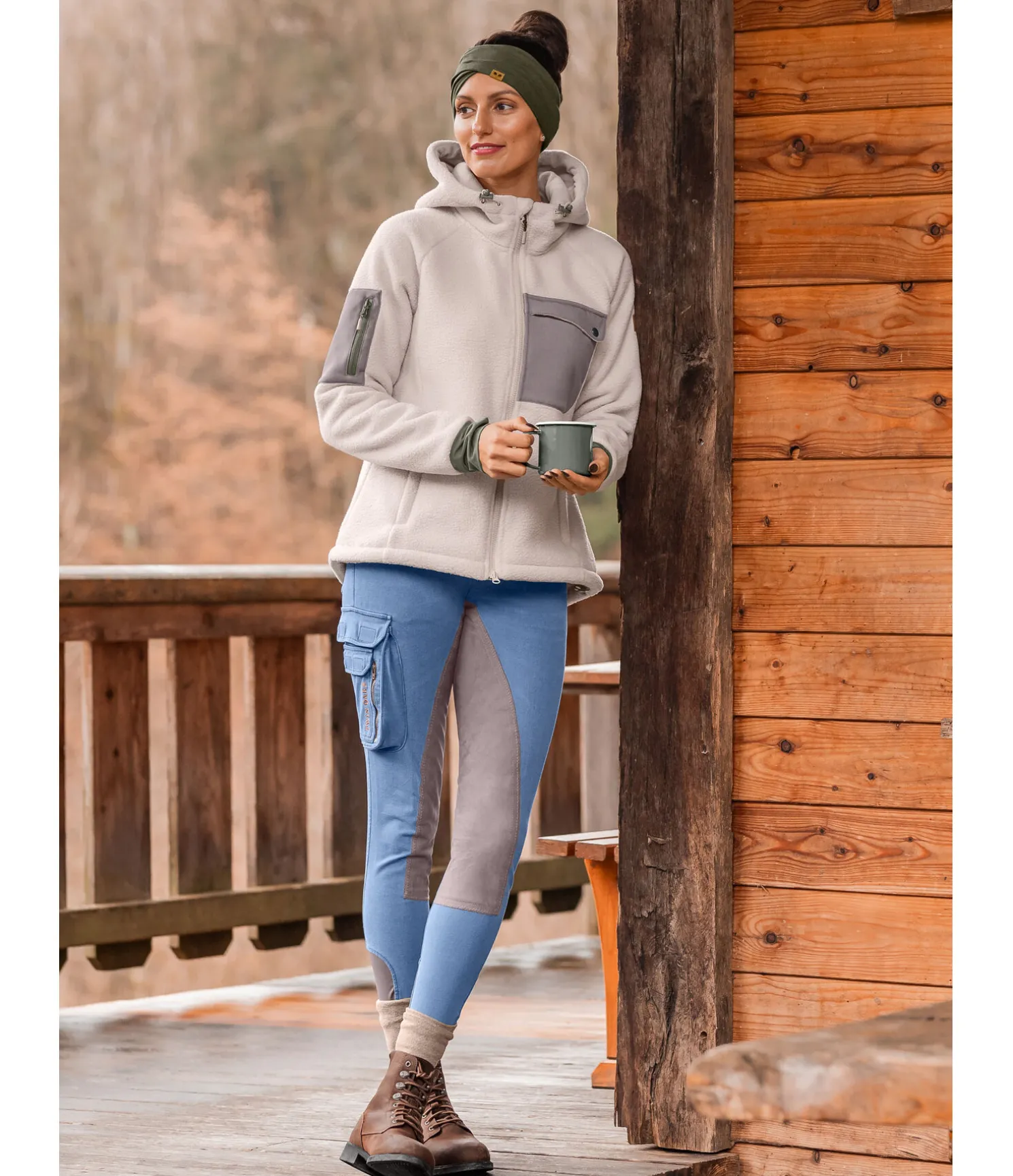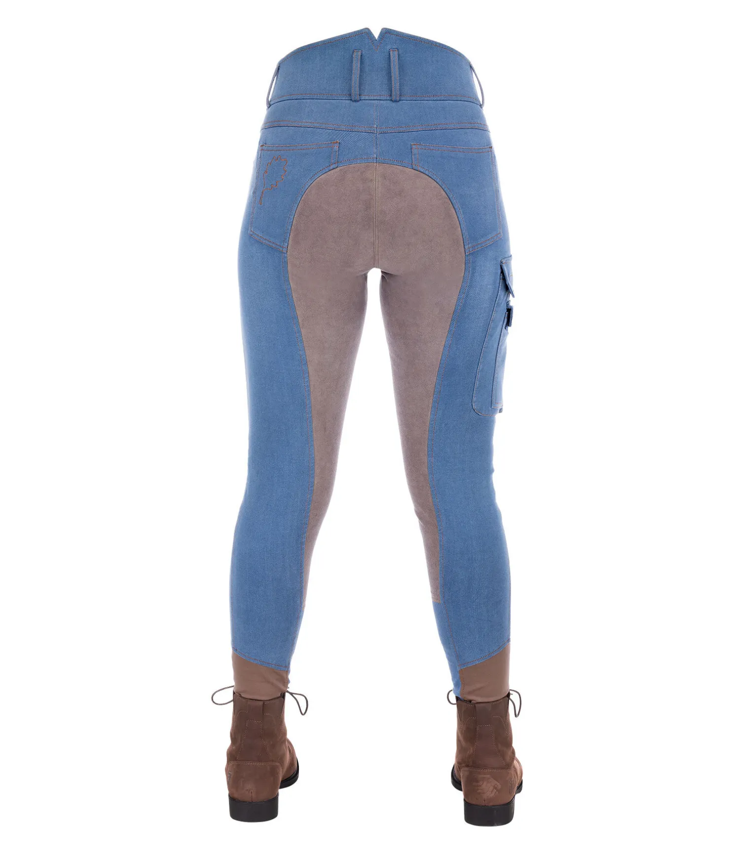 Pantalon d’équitation en jean, confortable et élastique. Taille haute. Effet délavé. Fond intégral en matière synthétique de grande qualité. Large poche sur la cuisse droite, petite poche zippée et deux poches refermables par patte auto-agrippante. Bas de jambe élastiqué pour un confort optimal. 60 % coton, 24 % polyester, 10 % viscose, 6 % élasthanne.