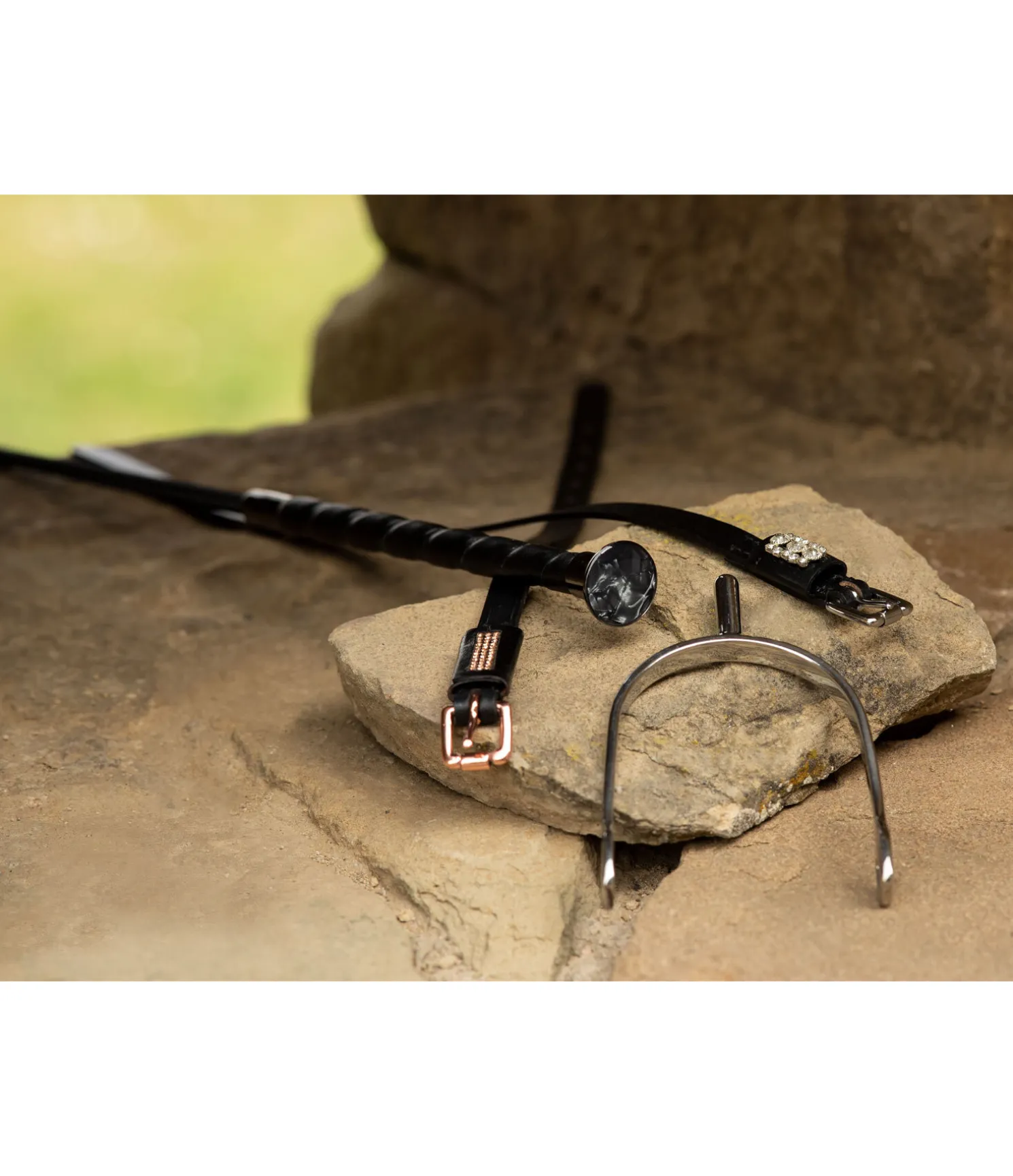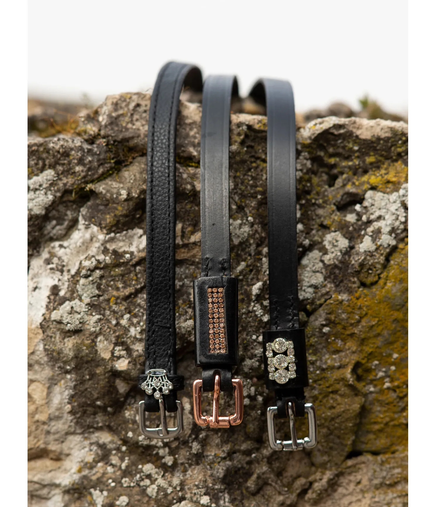 En cuir avec strass. Boucles argentées en couleur SI et rose doré en couleur RG.