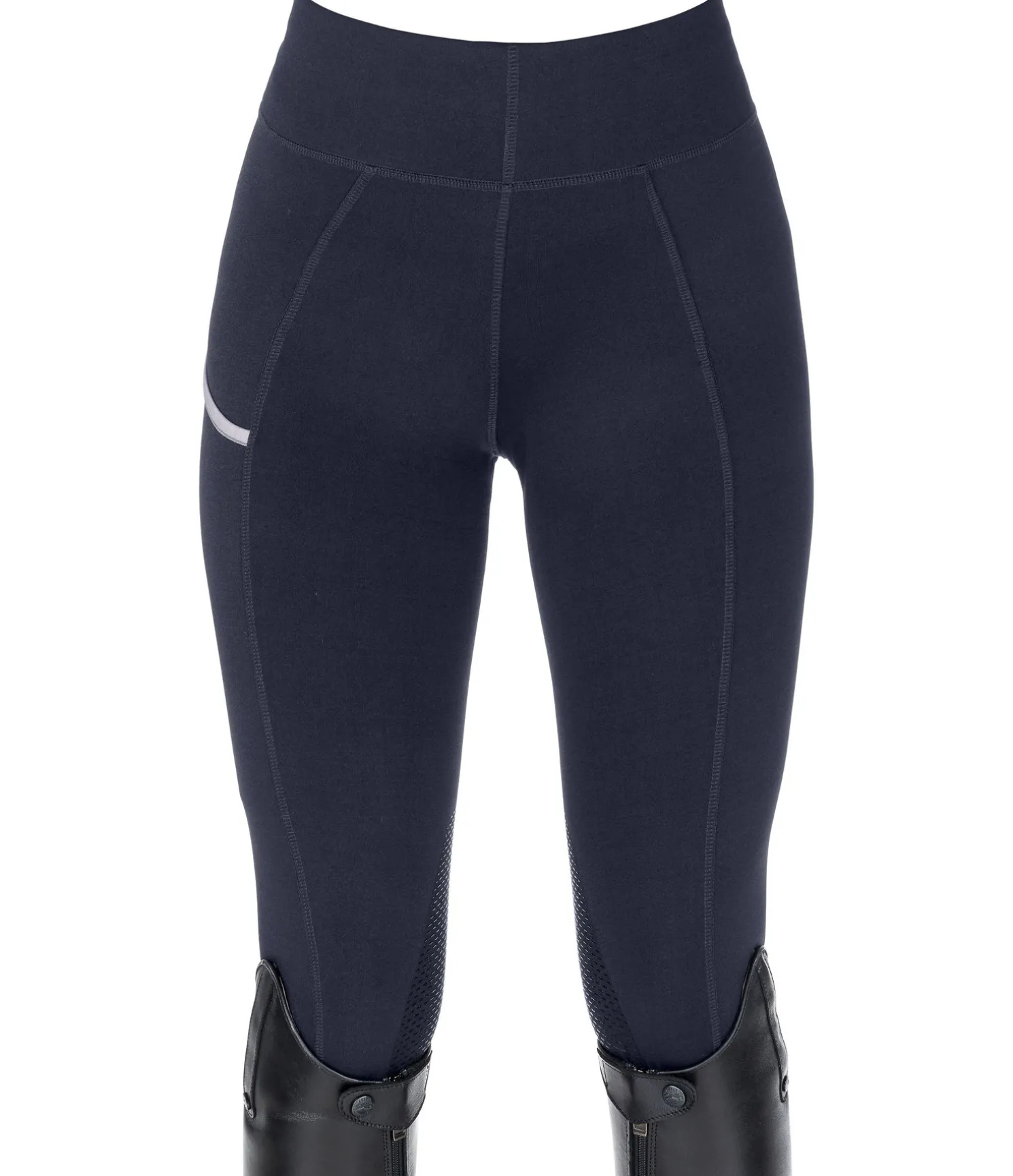 Legging d’équitation basique avec basanes en silicone. Stretch extensible et très doux. Ceinture extra large. Poche pour téléphone portable sur la jambe. Aucune couture au niveau des genoux. Bas de jambe extensible sans patte auto-agrippante. 89 % polyester, 11 % élasthanne.