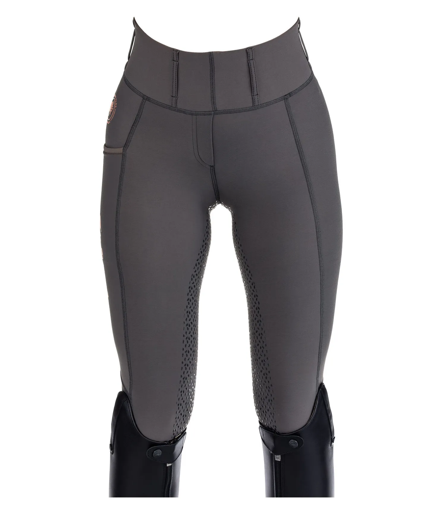 Durable ! Legging d’équitation extrêmement confortable. Fond intégral grip en silicone. Conçu principalement en matière stretch recyclée, extensible dans 4 directions. Ceinture extra large avec passants. Poche zippée arrière et poche latérale pour téléphone portable. Aucune couture au niveau des genoux. Bas de jambe extensible. Imprimé Felix Bühler Life Cycle. 78 % polyamide, 22 % élasthanne.