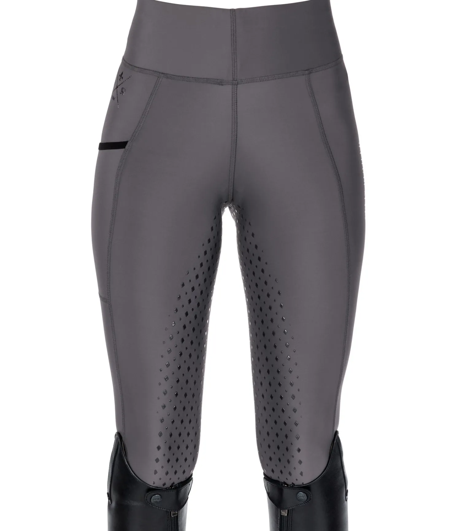 Legging d’équitation confortable. Fond intégral grip en silicone. Matière stretch extensible dans 4 directions. Ceinture extra large. Poche zippée arrière et poche latérale pour téléphone portable. Aucune couture au niveau des genoux. Bas de jambe extensible. Imprimé siliconé Felix Bühler. 90 % nylon, 10 % élasthanne.