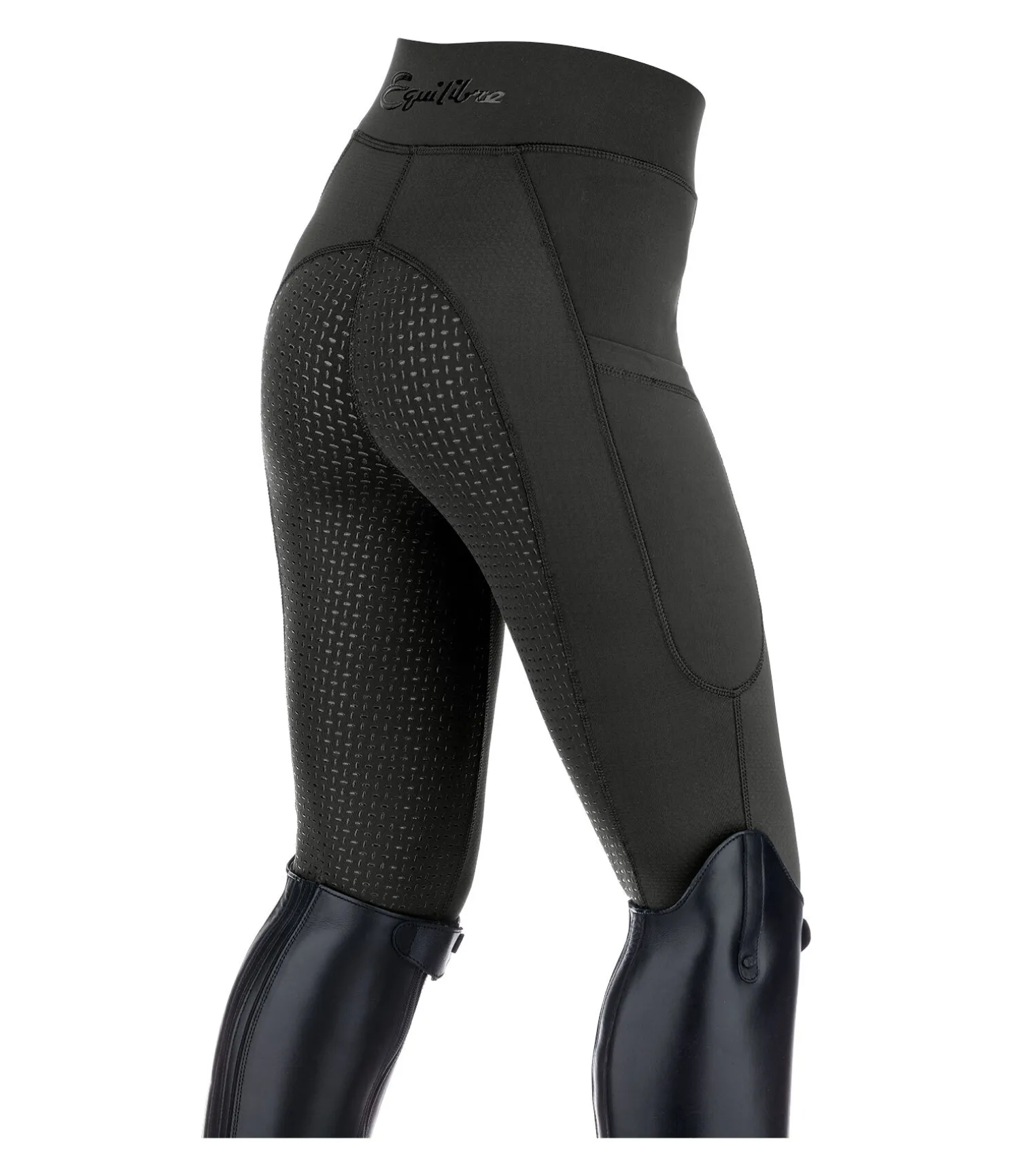 Legging d’équitation sportswear. Matière de grande qualité extensible dans 4 directions avec empiècements en mesh respirant sur les jambes. Séchage rapide. Fond intégral en silicone. Taille normale avec large ceinture élastiquée et poche pour téléphone portable sur la cuisse. 86 % nylon, 14 % élasthanne. Empiècements en mesh 95 % polyester, 5 % élasthanne.