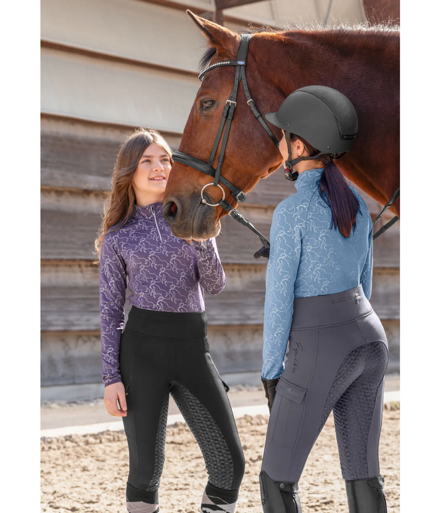 Legging d’équitation d’hiver super douillet et chaud pour enfant avec ceinture extra-large. Ajustement parfait et confortable grâce à la matière stretch souple extensible dans 4 directions avec intérieur molletonné. Respirant et à séchage rapide. Fond intégral en silicone. Poche latérale pour téléphone portable. 60 % polyester, 33 % polyamide, 7 % élasthanne.