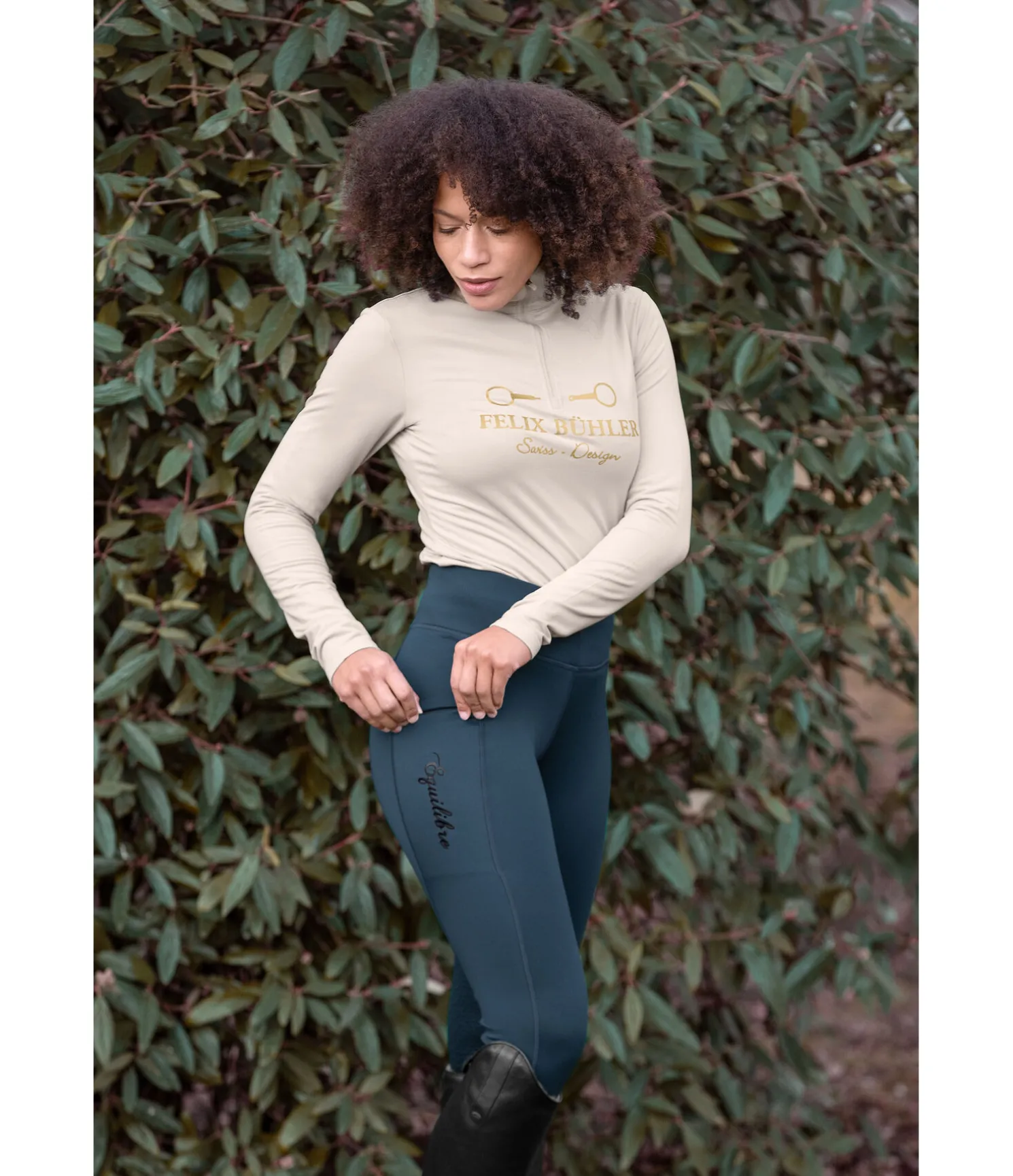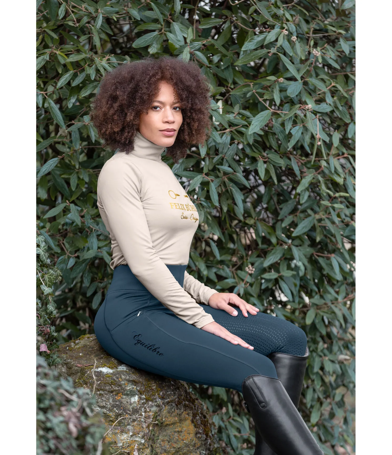 Legging d’équitation extensible avec fond intégral grip en silicone. Extérieur lisse et intérieur molletonné. Ceinture extra large élastiquée. Poche zippée pour téléphone portable sur la cuisse. Bas de jambe extensible sans patte auto-agrippante. 86 % polyester, 14 % élasthanne.