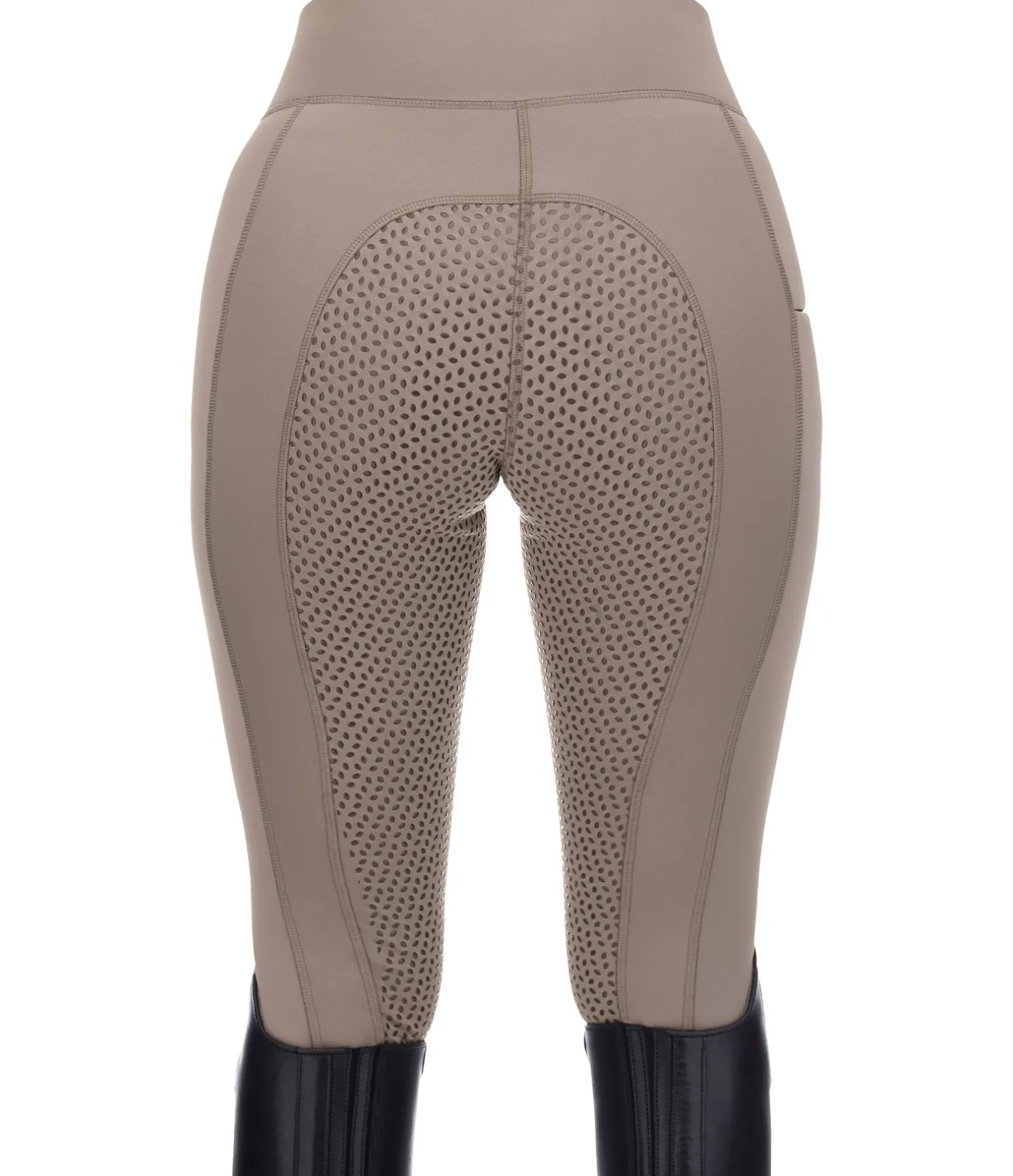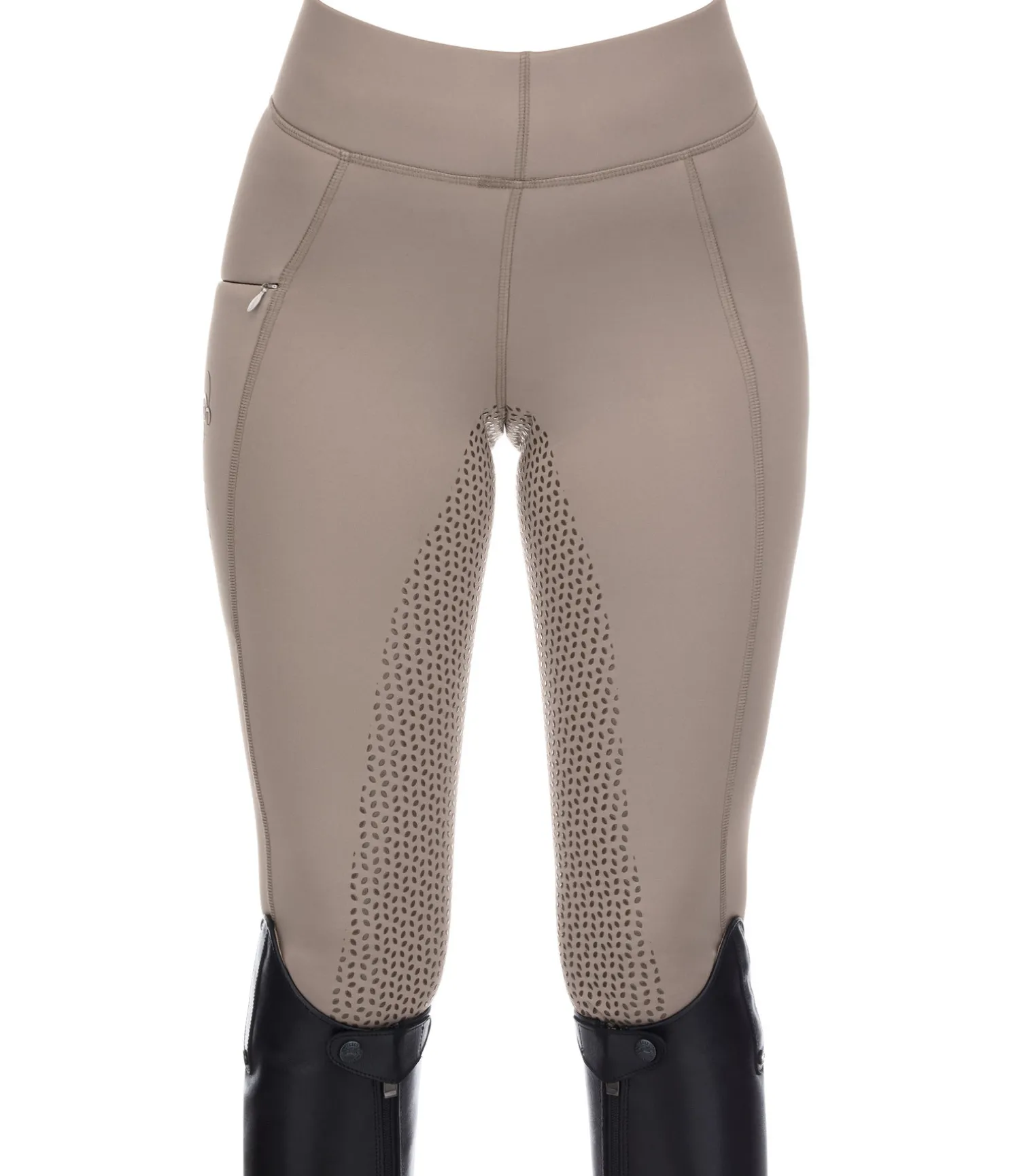 Legging d’équitation extensible avec fond intégral grip en silicone. Extérieur lisse et intérieur molletonné. Ceinture extra large élastiquée. Poche zippée pour téléphone portable sur la cuisse. Bas de jambe extensible sans patte auto-agrippante. 86 % polyester, 14 % élasthanne.