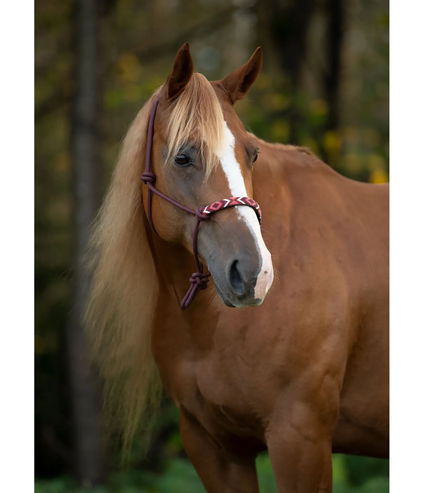 Beau licol à noeuds robuste. Avec doublure à la têtière et muserolle. Orné de perles formant un superbe motif. Épaisseur des cordes 8 mm. 100 % polypropylène.