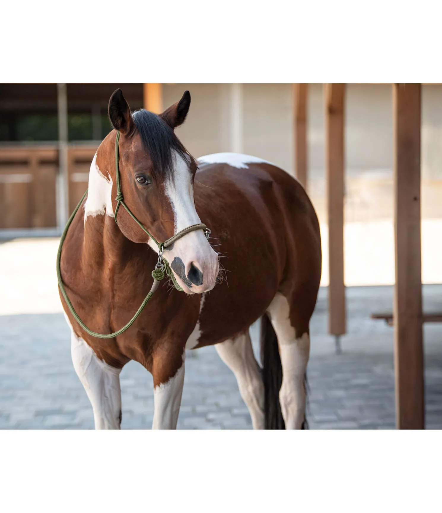 Magnifique licol à noeuds avec muserolle réglable. Idéal pour une communication précise avec le cheval. Muserolle renforcée et anneaux pour rênes. Épaisseur de la corde 6 mm. Avec pompon. 100 % polypropylène.